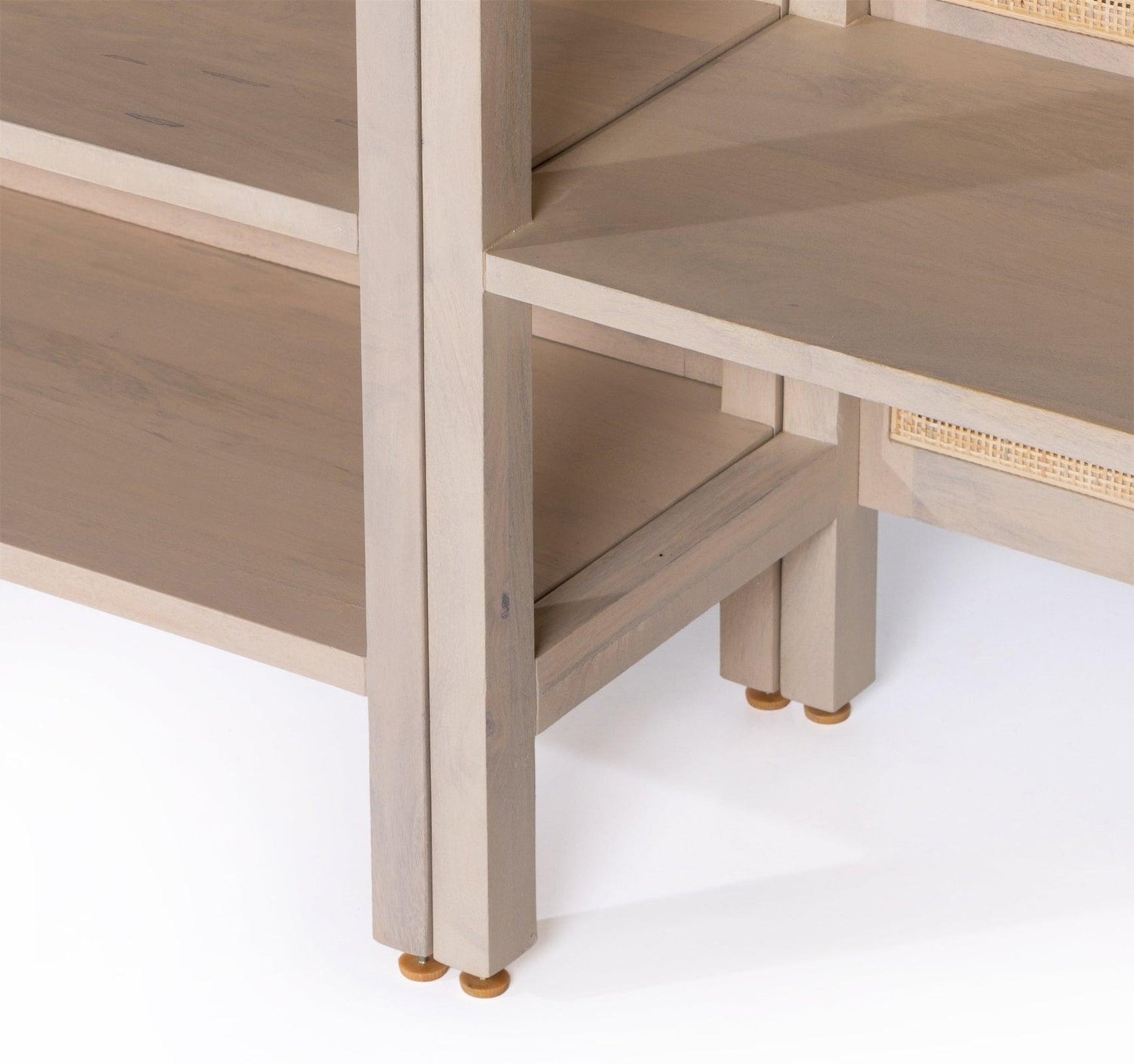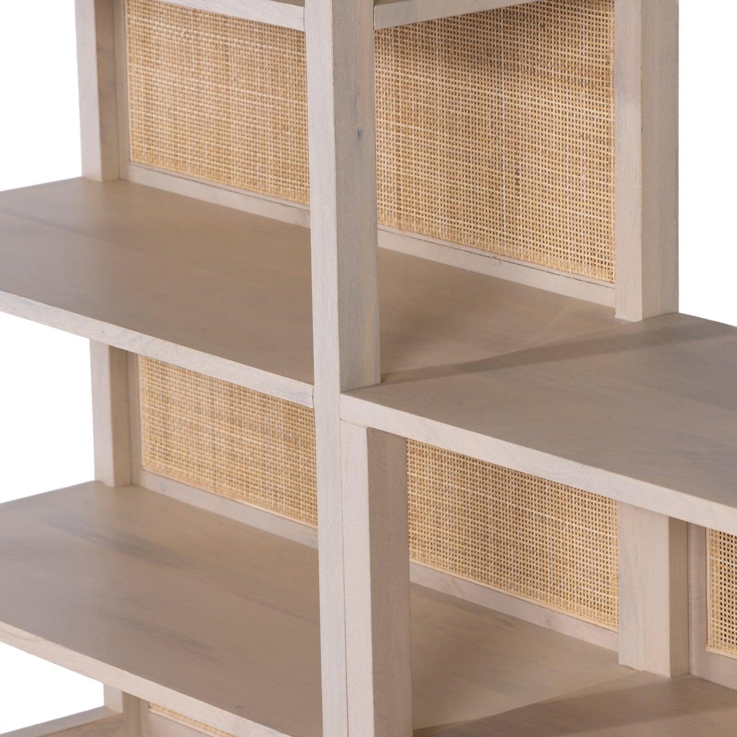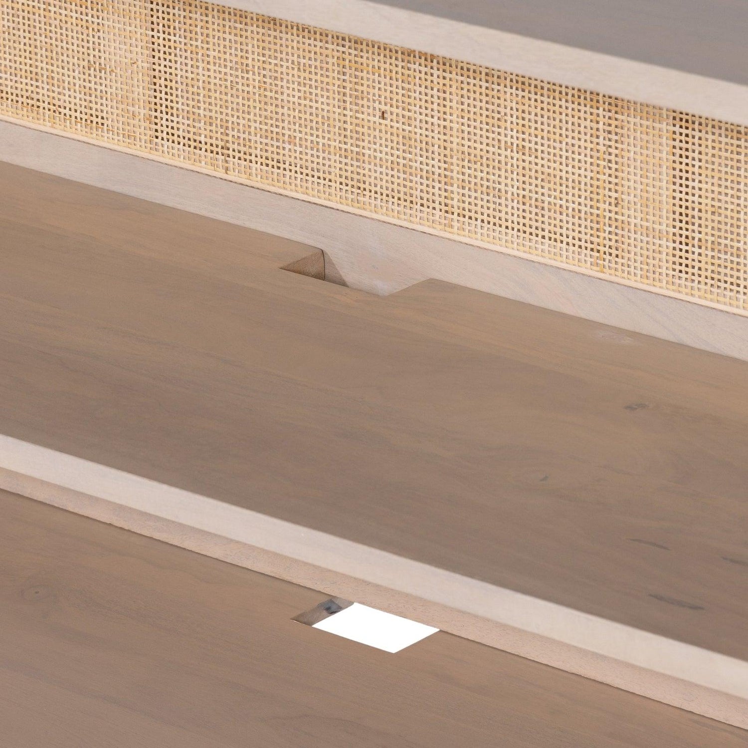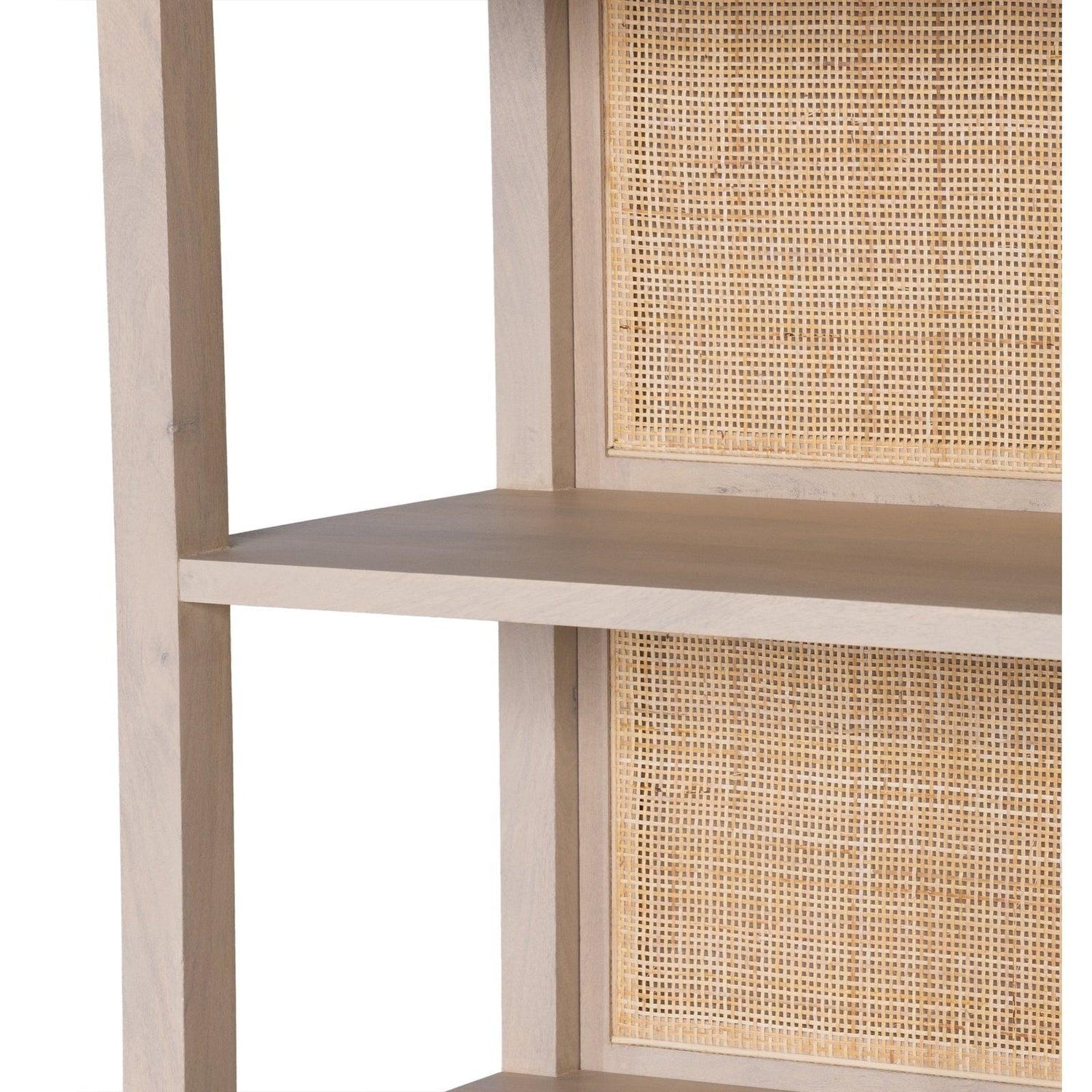 • El mango sólido lavado en negro o lavado claro forma un marco aireado y lineal para paneles de caña tejida, creando un contraste de color llamativo con una textura rica.