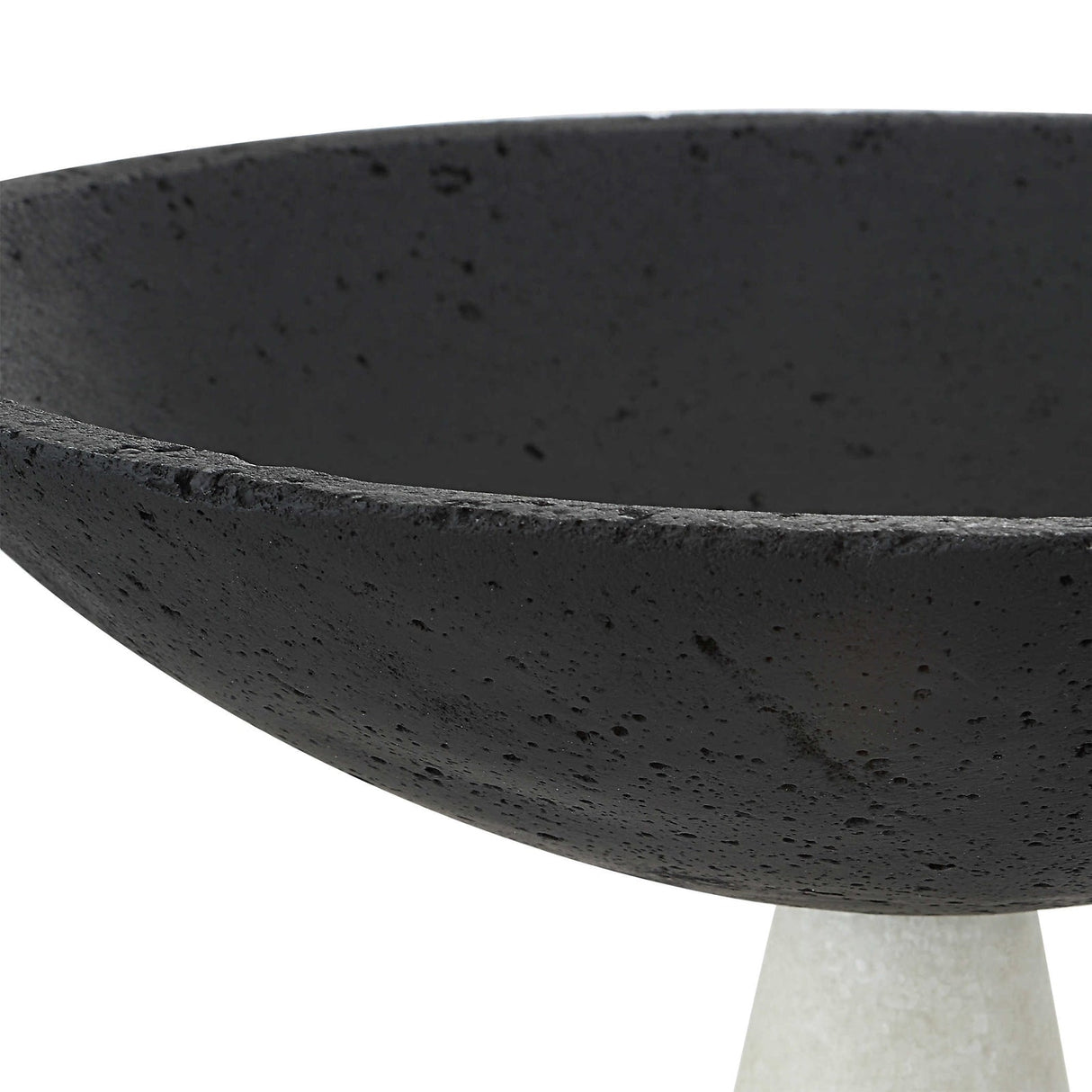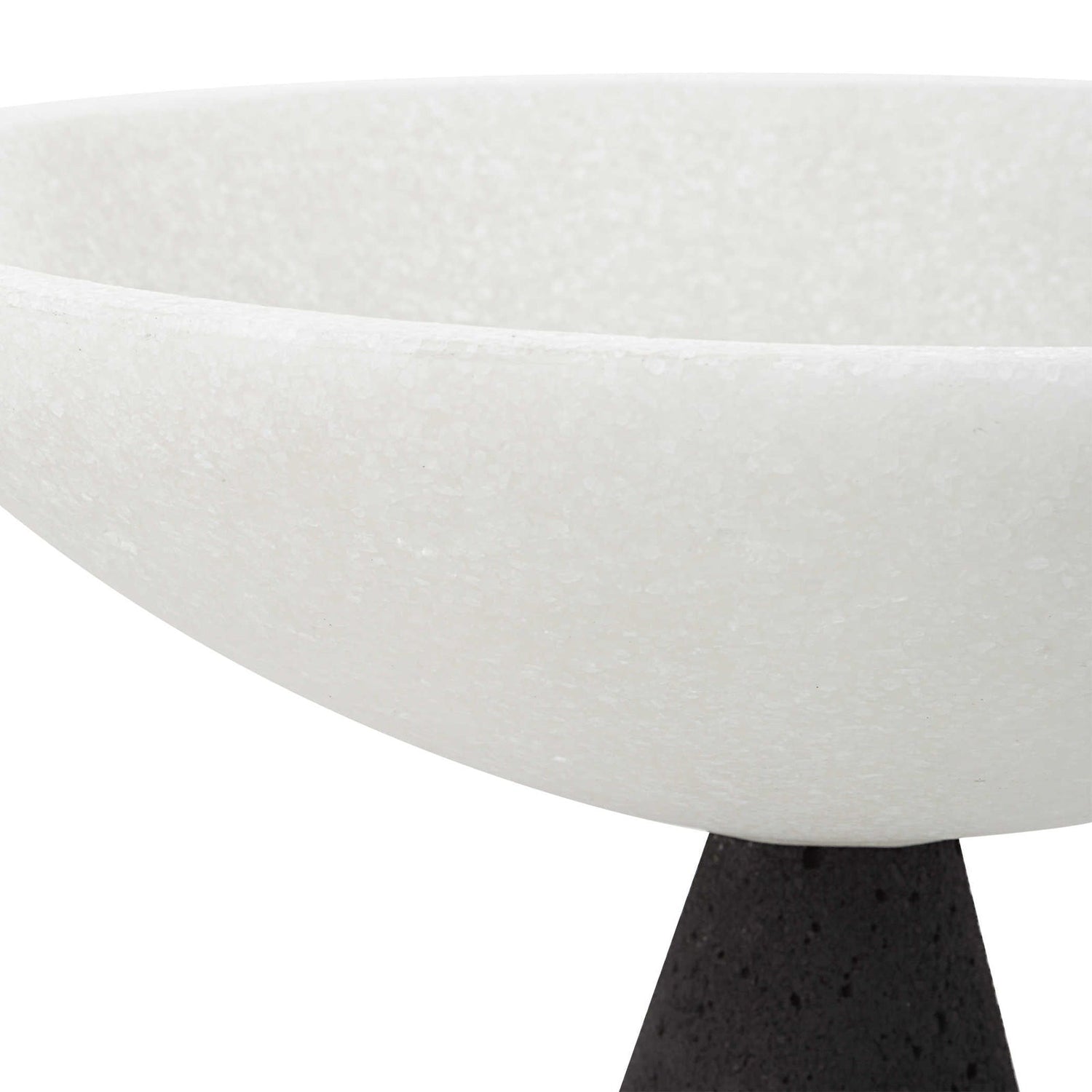 - El juego de dos cuencos de pedestal modernos está fabricado con un llamativo mármol granulado blanco y negro, que reproduce con precisión el aspecto del mármol de Thassos.