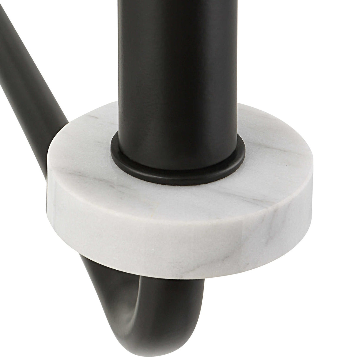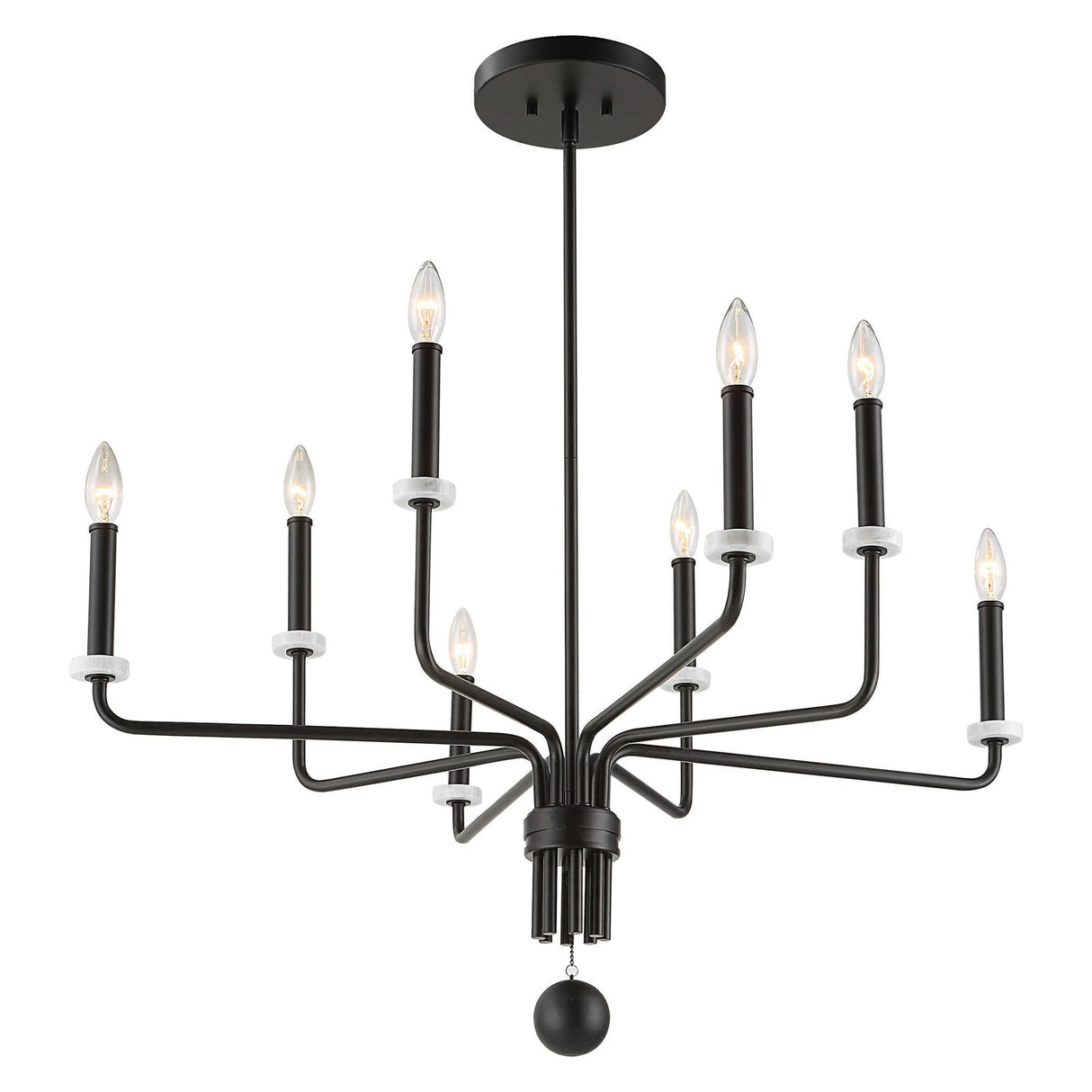 - Las líneas suaves y elegantes y modernas le dan a este candelabro de 8 luces una sensación dramática, con un acabado en un negro mate profundo y elegantes discos de mármol blanco.
