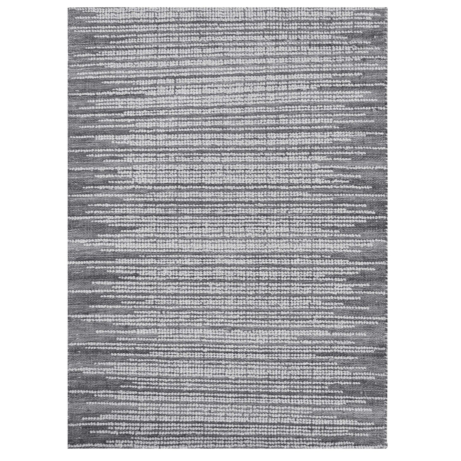 - Esta alfombra tejida a mano presenta lana gris natural sin teñir con detalles en relieve de color marfil.