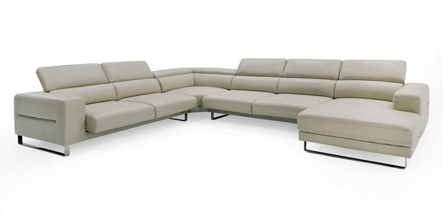 Divani Casa Hawkey - Sofá seccional contemporáneo con chaise longue RAF de cuero gris claro - VGKK-KF1066-LG | VIG