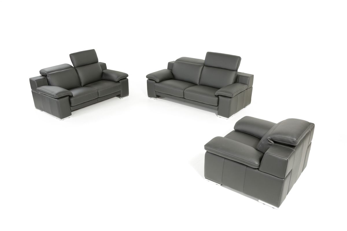 Conjunto de sofá moderno de cuero italiano Lamod Italia Evergreen en negro - VGNTEVERGREEN-BLK | VIG