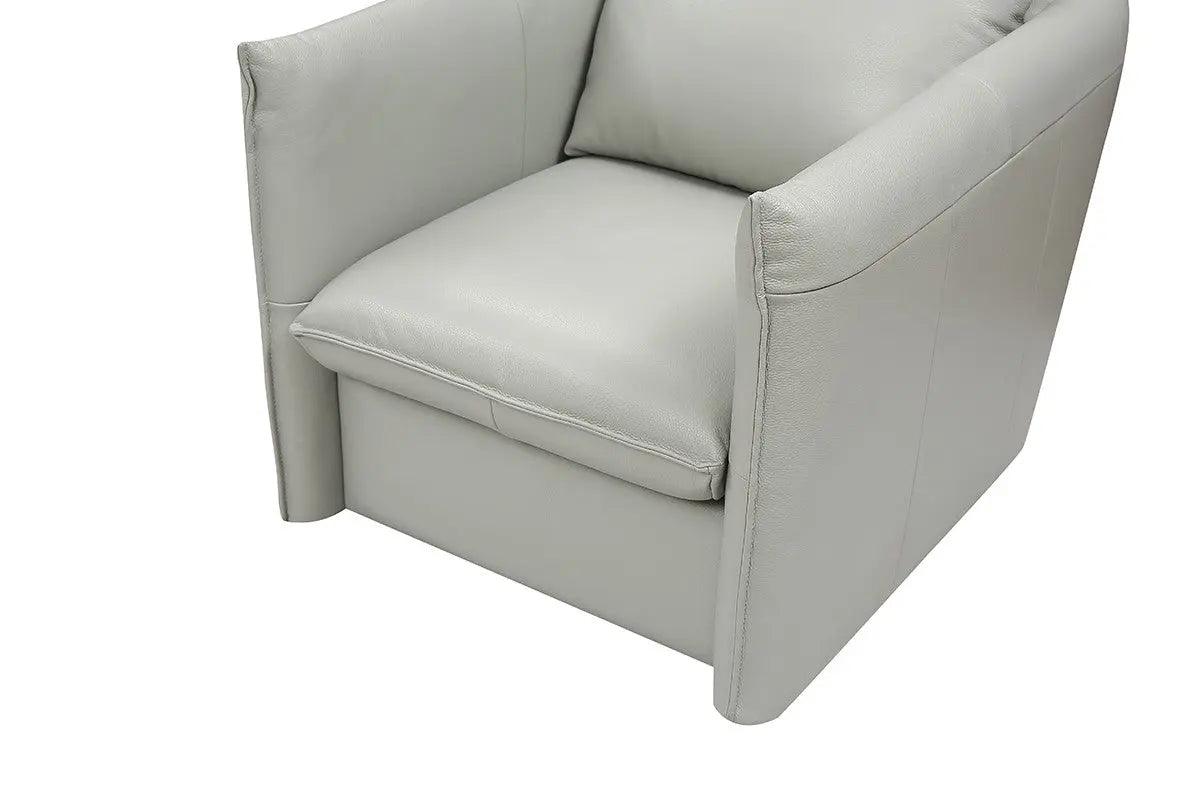 Crea el rincón de lectura de tus sueños con la elegante silla giratoria moderna de cuero gris Tamworth de Divani Casa. Diseñada para ofrecerte una silla cómoda y duradera, cuenta con cojines densamente acolchados que te garantizan comodidad y bienestar. Su estructura cuadrada te invita a acurrucarte en su calidez y suavidad, mientras que el respaldo alto y el diseño de brazos te brindan seguridad. Las costuras laterales en la parte trasera y delantera de los brazos, así como en los bordes, garantizan su larga vida útil. La base giratoria de metal te ofrece mayor flexibilidad, permitiéndote girar fácilmente en cualquier dirección. Realza la comodidad de tu hogar con esta moderna silla giratoria de cuero, tapizada en cuero italiano gris a juego.