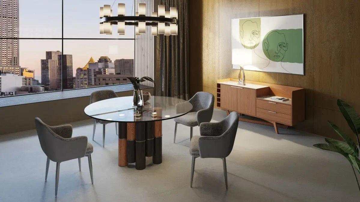 Modrest Greta - Mesa de comedor moderna de vidrio y nogal - VGCSRT-19070-WAL-DT | VIG