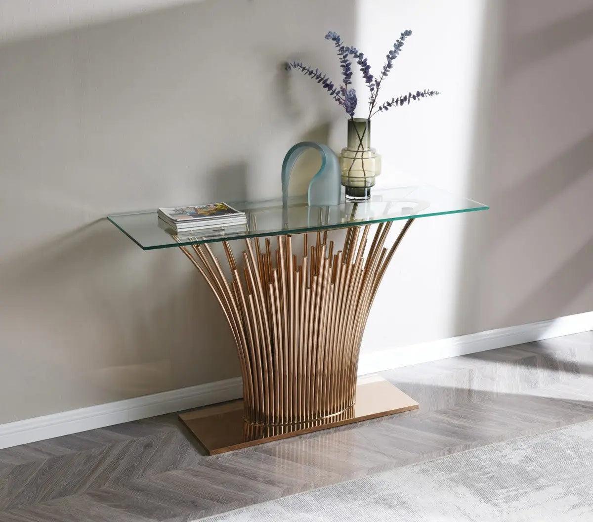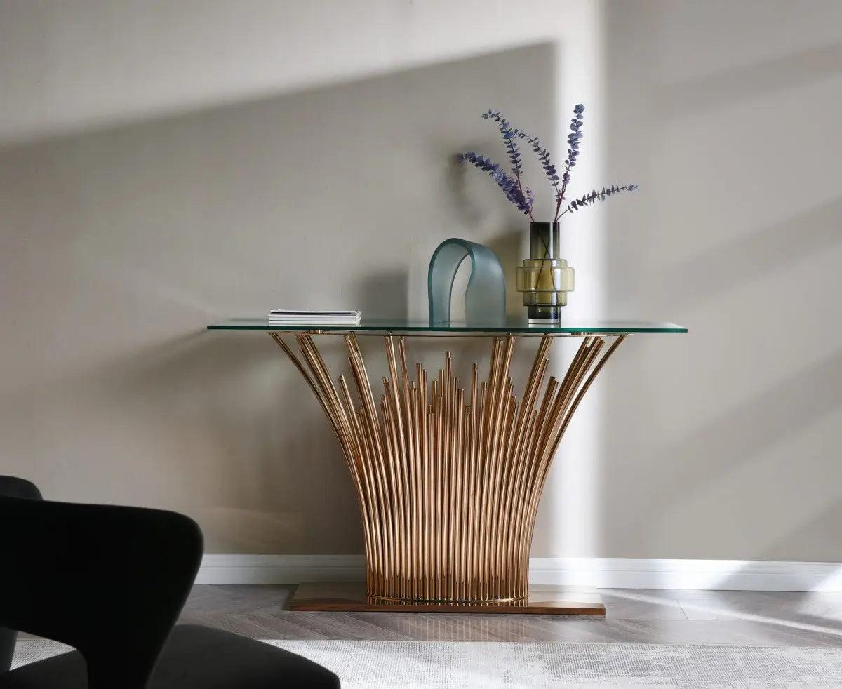 Modrest Paxton - Consola moderna de cristal y oro rosa - VGVCK817-CS-RG-CT | VIG