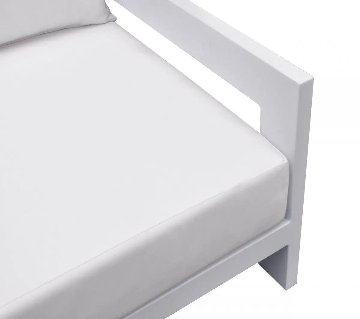 La tumbona Wake para exteriores cuenta con una elegante estructura de aluminio blanco roto con acabado en polvo, asiento extraíble y cojines impermeables. Esta tumbona hace que cualquier jardín sea mucho más cómodo y relajante.