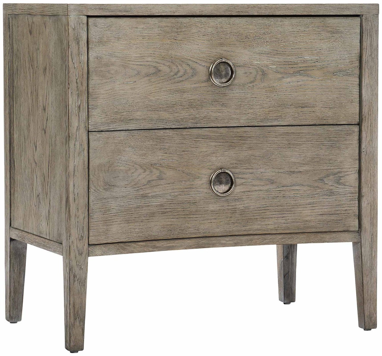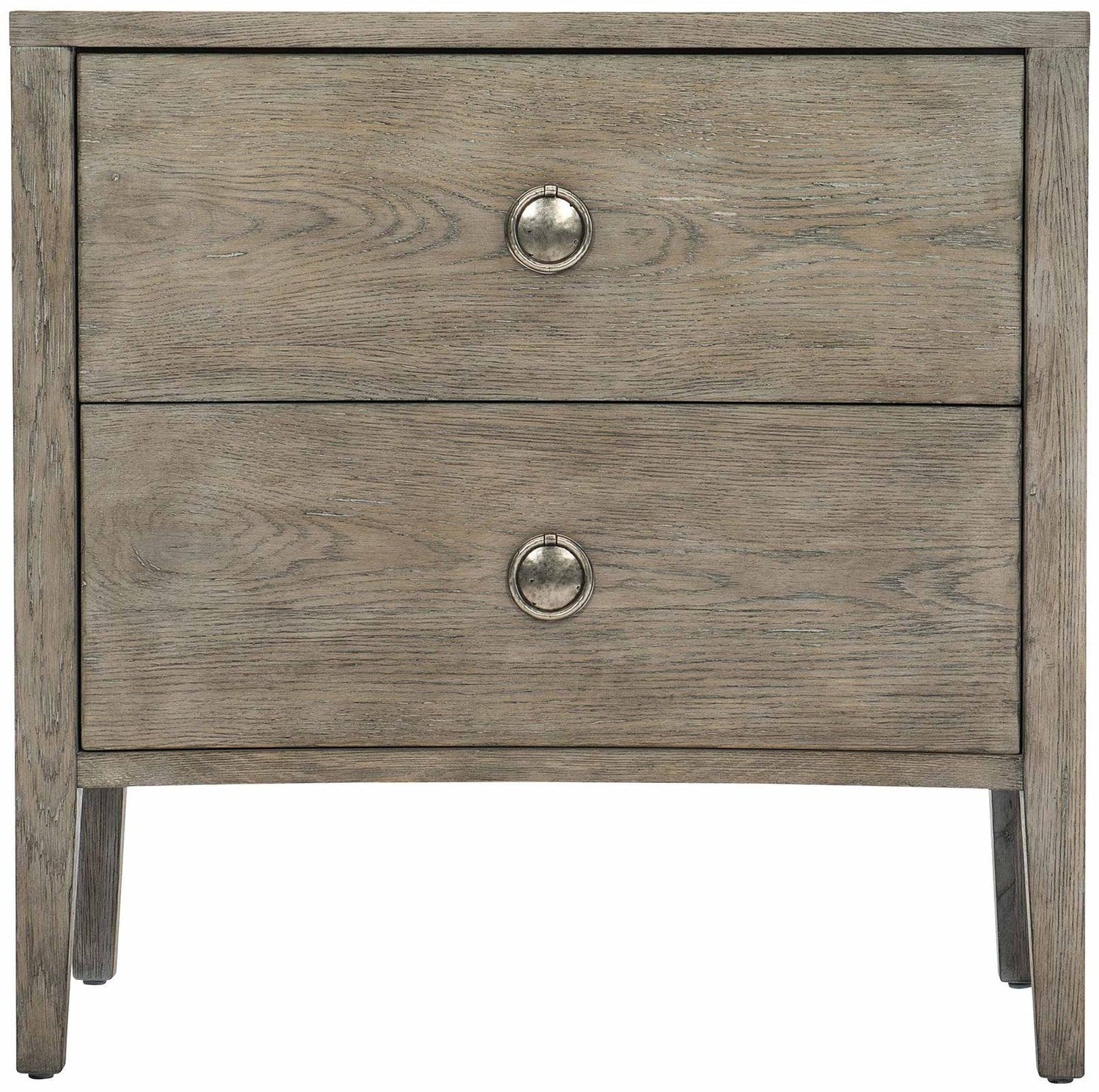 Mesita de noche Albion con acabado peltre, frontal curvo y carga USB | Bernhardt