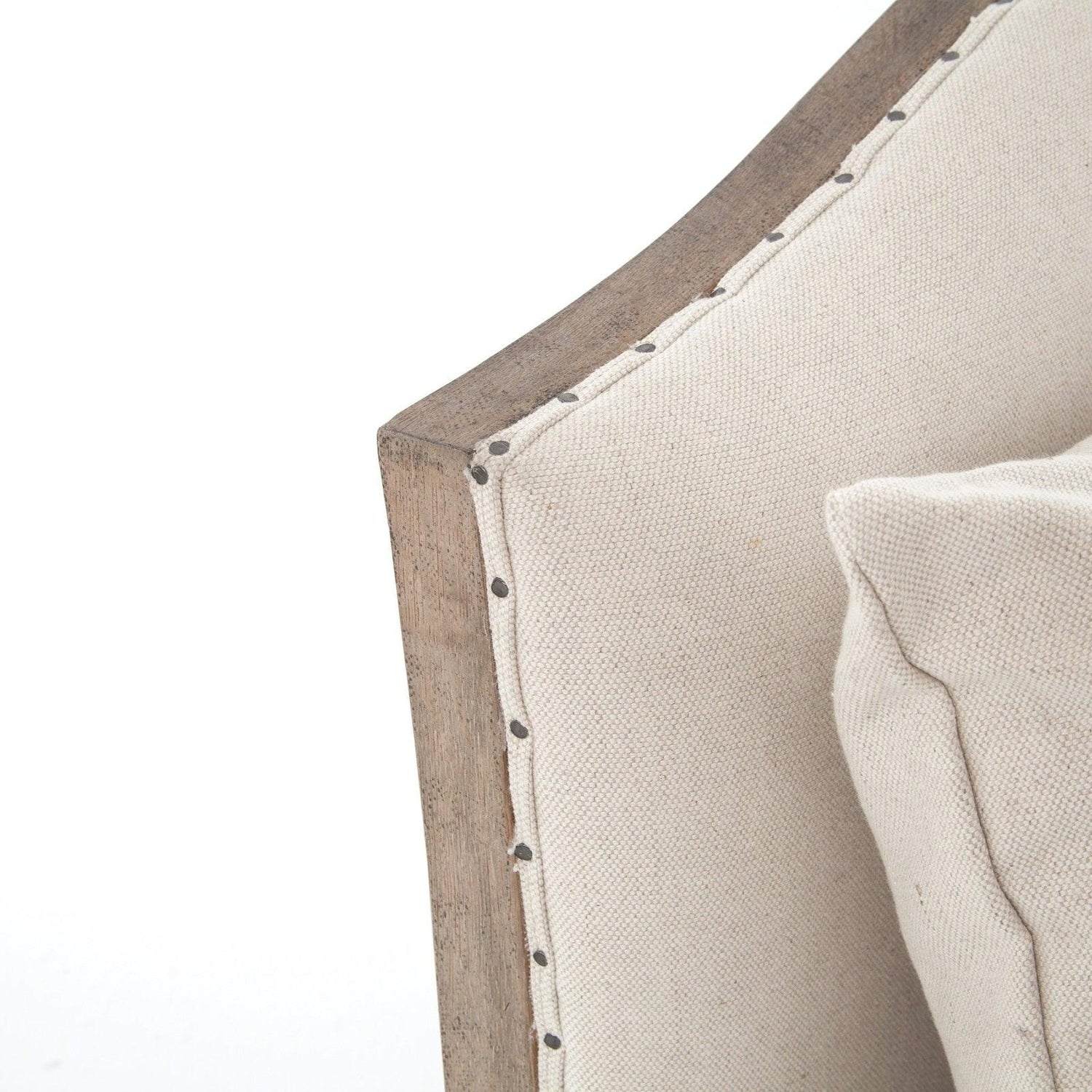 - Lino natural, tachuelas y detalles de flor de lis de hierro.
