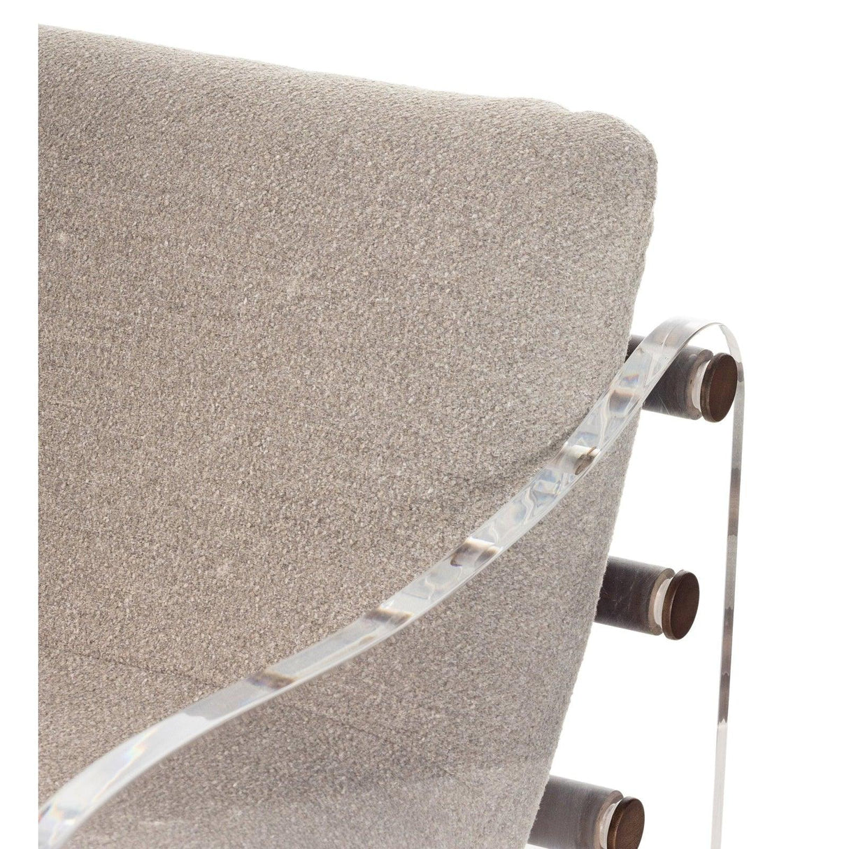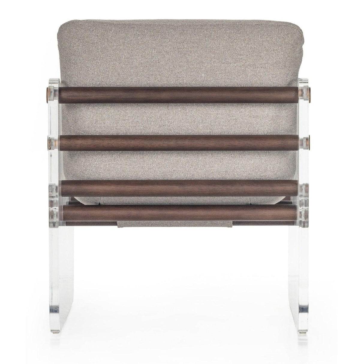 - Los paneles de acrílico transparente forman un marco estilo panel para clavijas de parawood curvas, con asientos tipo flotador hechos de olefina 100 % reciclada de Turquía.