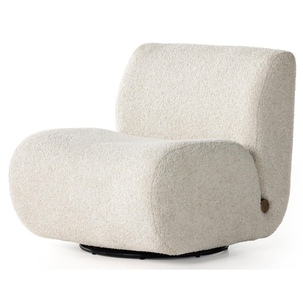 - Un elegante cuero italiano de grano superior y una tela texturizada de alto rendimiento cubren una silueta curvilínea y sin brazos, con una clavija de roble macizo que sobresale para lograr un efecto adicional.