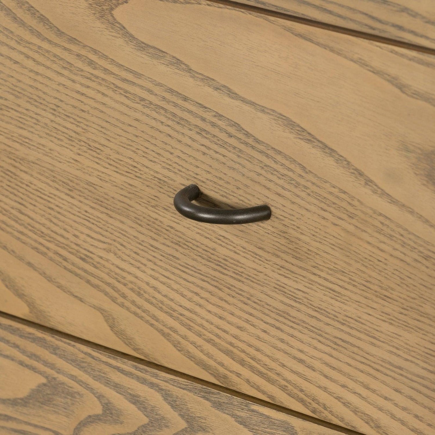 - Seis cajones espaciosos brindan un generoso espacio de almacenamiento al dormitorio, mientras que las estanterías estilo camilla hechas de cordón de papel tejido brindan un toque final texturizado.
