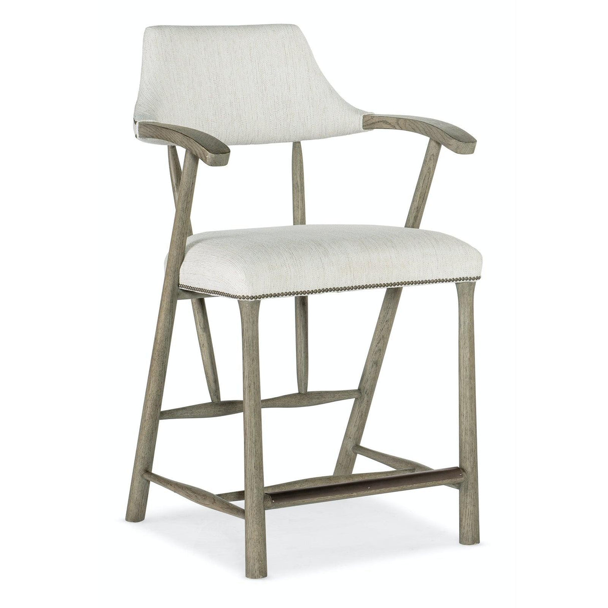 - Orgánico, elegante y cómodo, el taburete de mostrador Stack Rock tiene un asiento y un respaldo tapizados en tela de textura neutra Remington Porcelain.