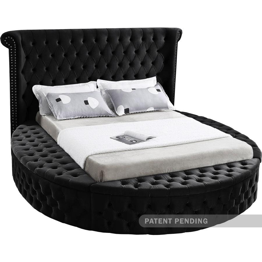 Meridian Furniture - Cama King de terciopelo negro de lujo - LuxusBlack-K