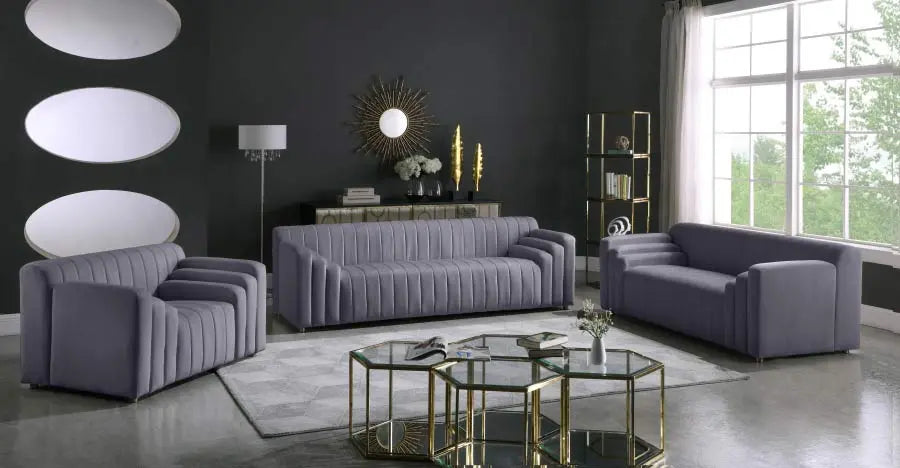 Meridian Furniture - Sofá de dos plazas Naya de terciopelo gris - 637Grey-L