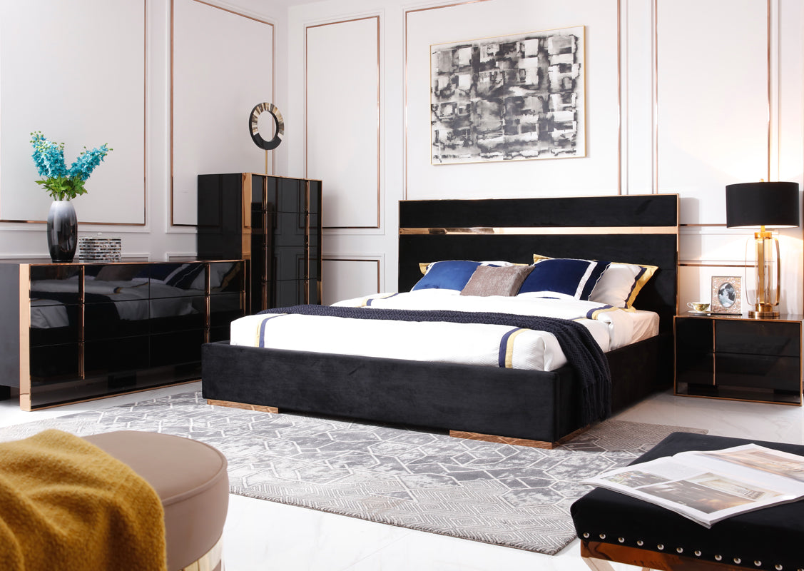 Cómoda moderna Nova Domus Cartier en negro y oro rosa