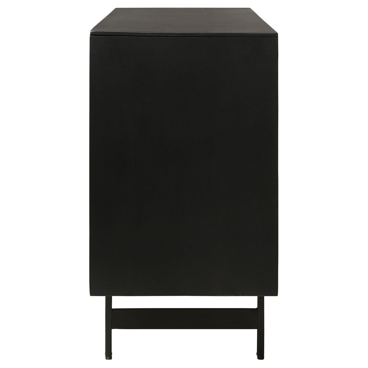 Home Elegance Furniture presenta con orgullo el gabinete decorativo de madera de 3 puertas Aminah en color natural y negro | Coaster , una adición refinada diseñada para realzar su hogar con un estilo atemporal.