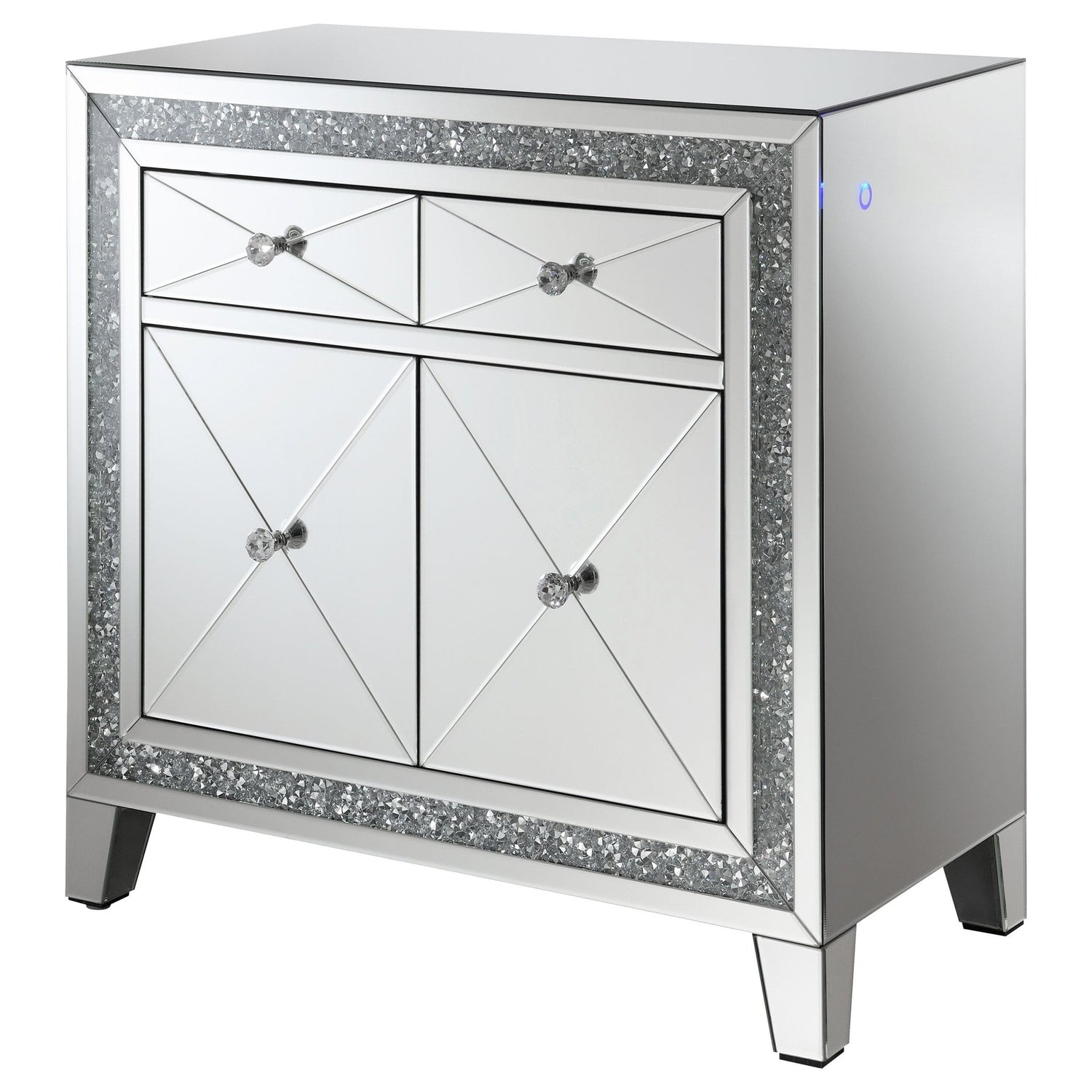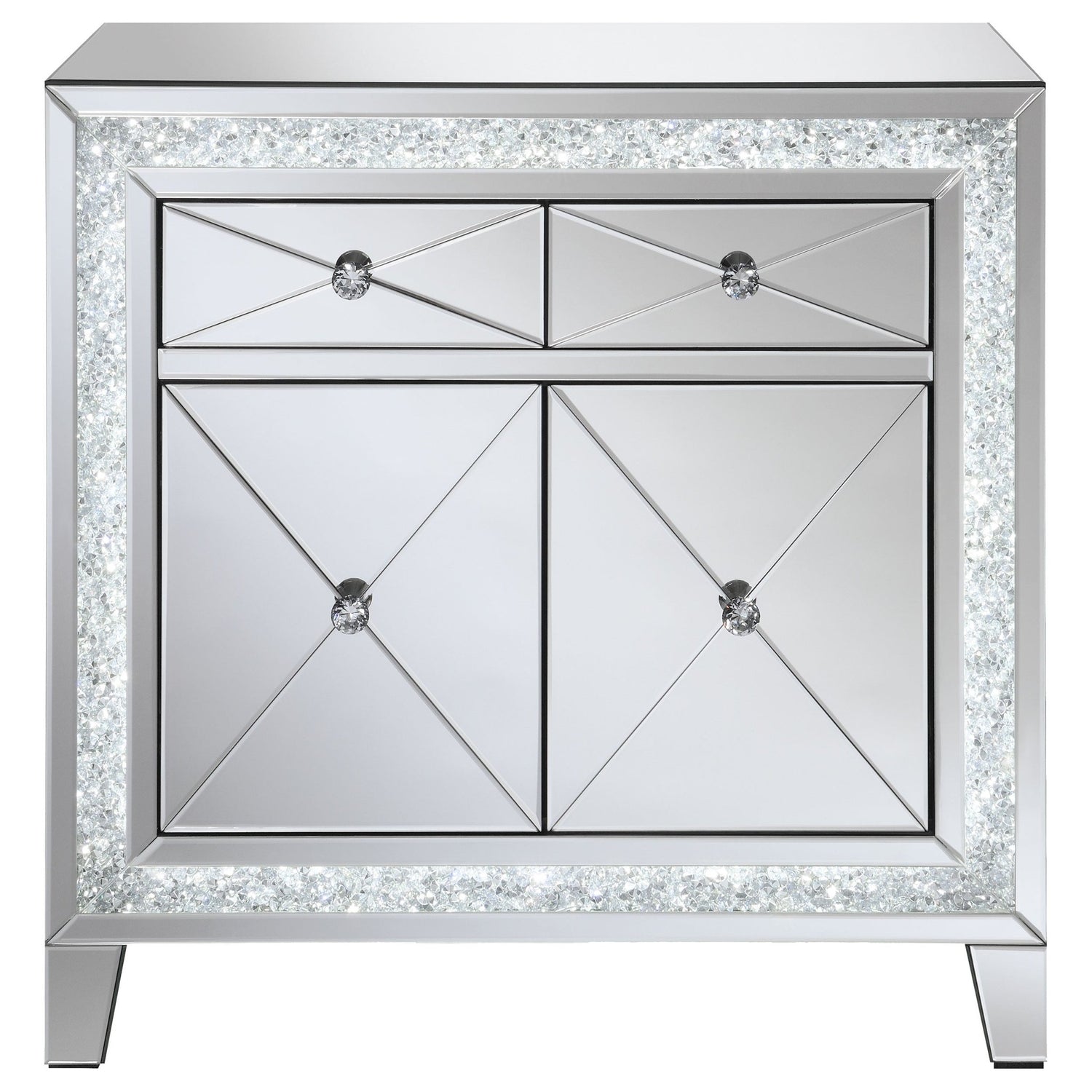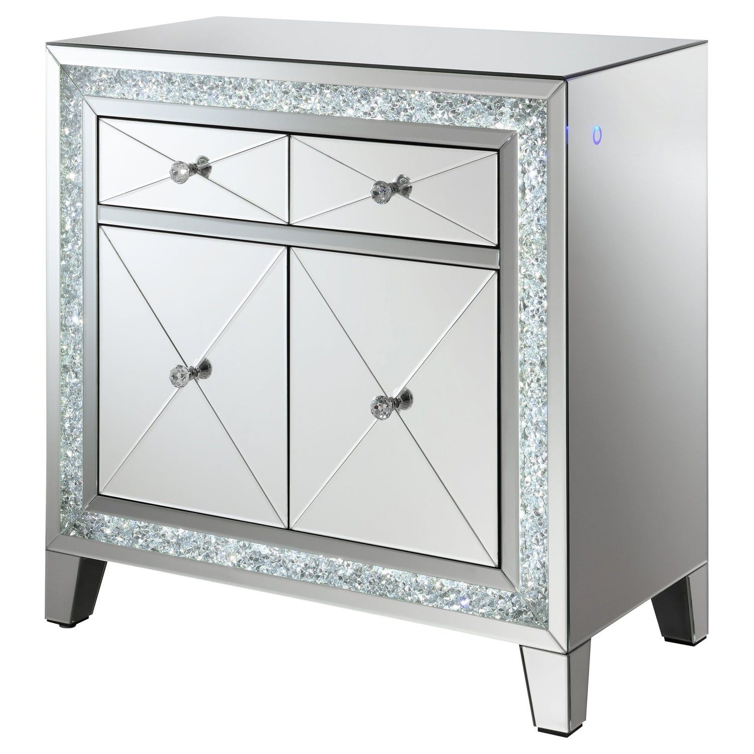 Home Elegance Furniture presenta con orgullo el gabinete decorativo de 2 cajones con espejo transparente e iluminación LED Arwen | Coaster , una adición refinada diseñada para realzar su hogar con un estilo atemporal.