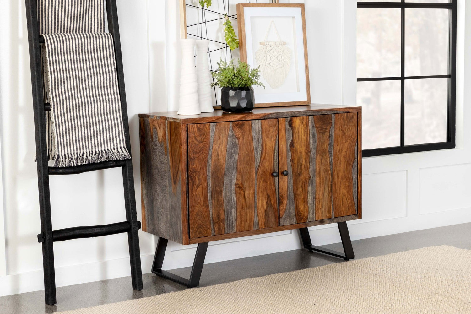 Home Elegance Furniture presenta con orgullo el gabinete auxiliar con base de trineo Mathis Sheesham Grey | Coaster , una adición refinada diseñada para realzar su hogar con un estilo atemporal.