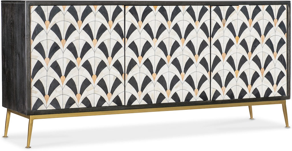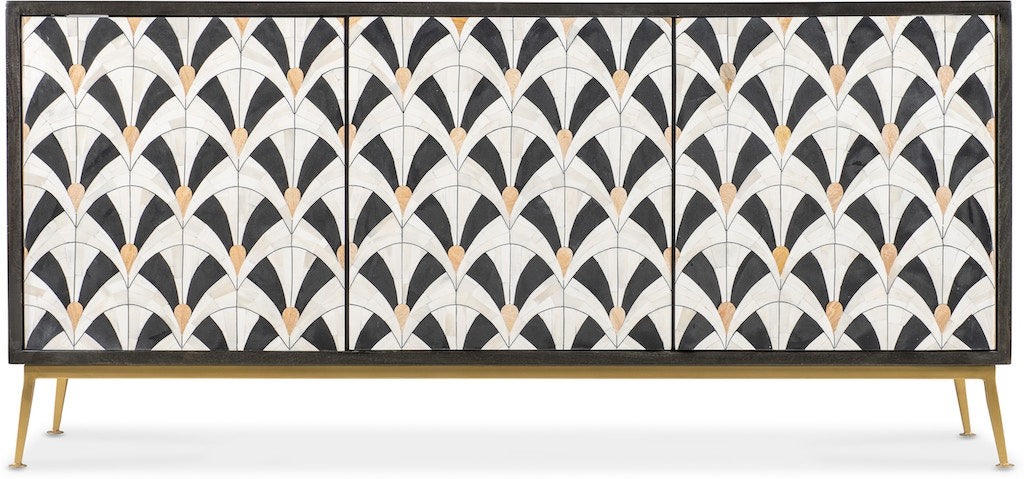 Aparador Melange Renee de Hooker Furniture: madera de mango con incrustaciones de hueso, base de metal dorado, estilo transicional está agotado y se enviará tan pronto como vuelva a estar disponible.