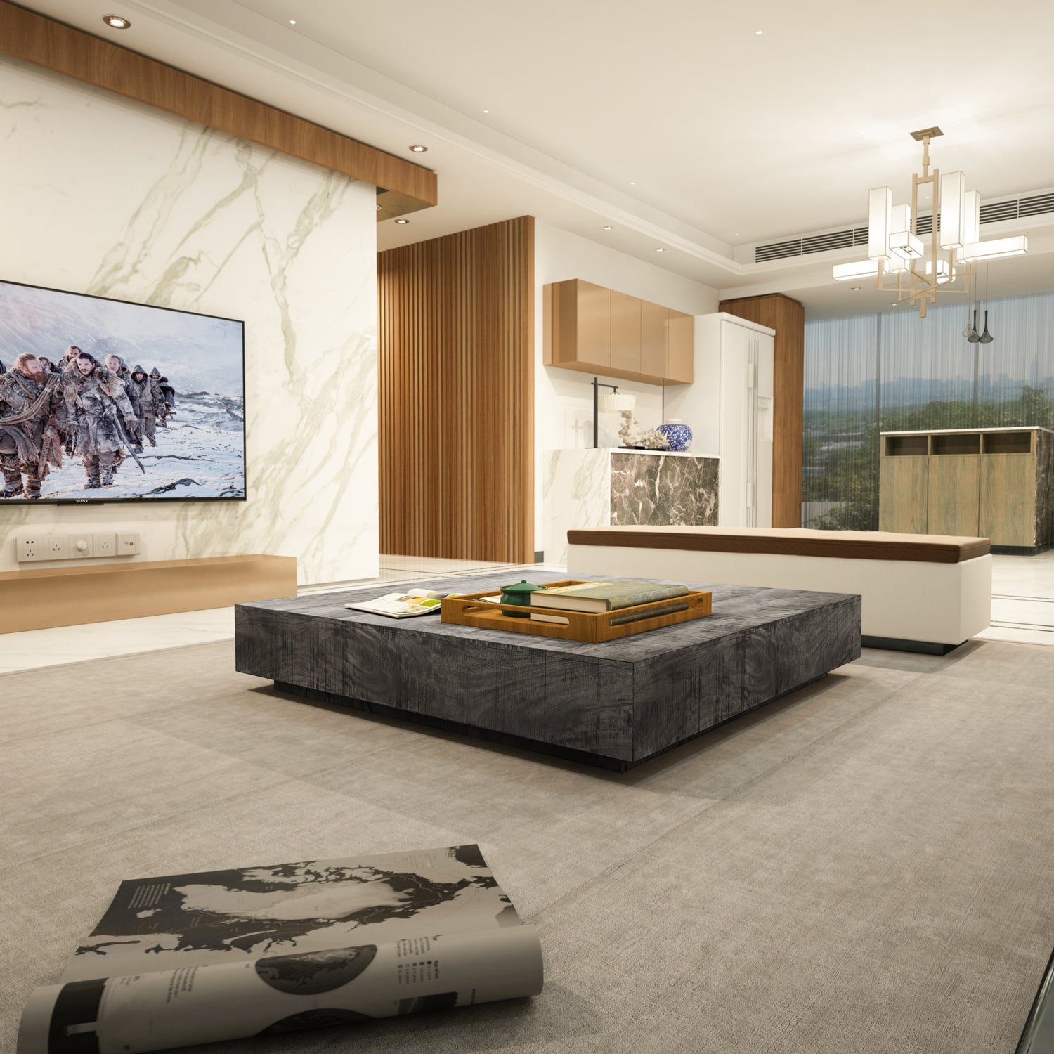 Mesa de centro de madera maciza de perfil bajo con acabado en carbón: características y detalles clave