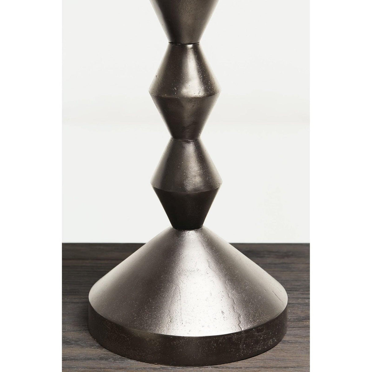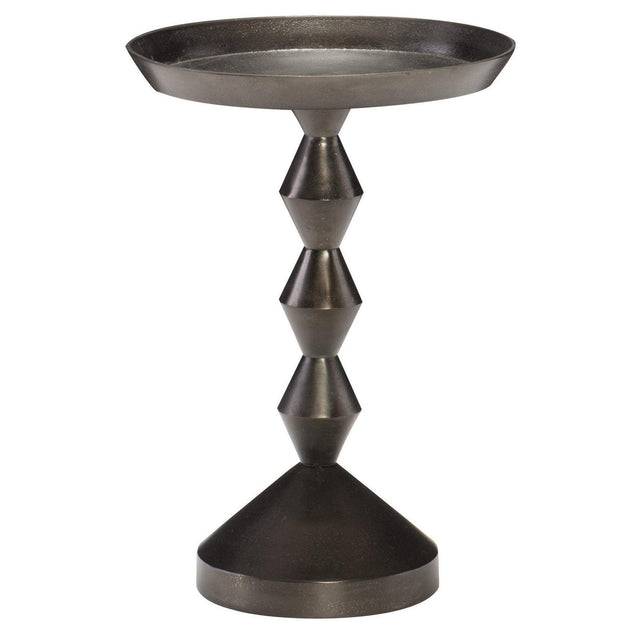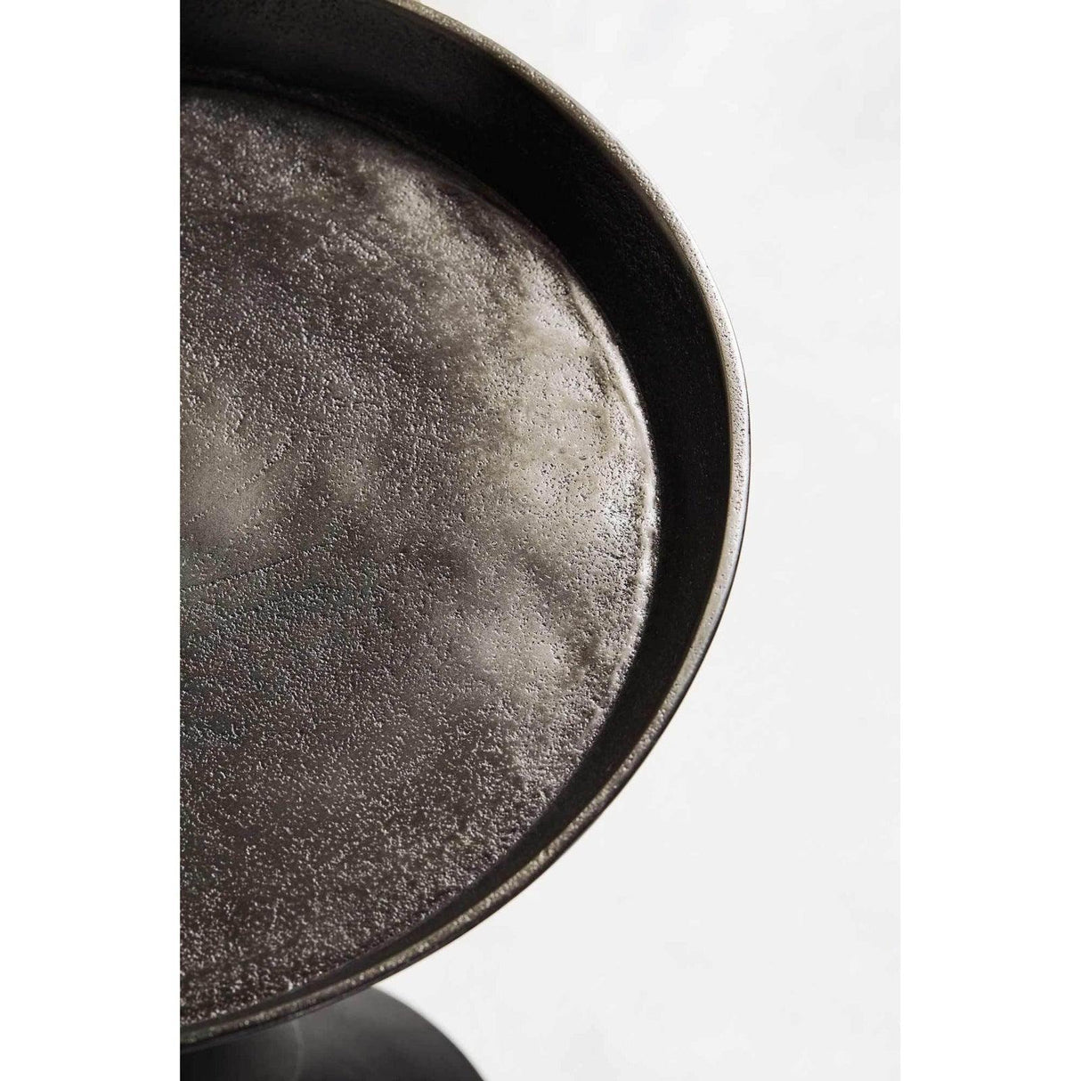 - Mesa de pedestal de aluminio fundido con acabado en níquel negro