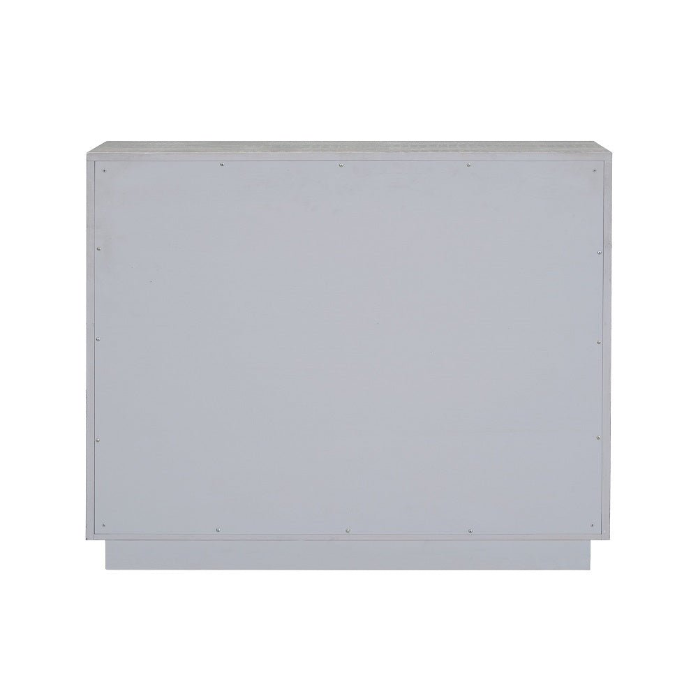 Home Elegance Furniture presenta con orgullo el gabinete consola Anpu AC02505 con acabado en piel de cocodrilo sintética plateada | Acme , una adición refinada diseñada para elevar su hogar con un estilo atemporal.