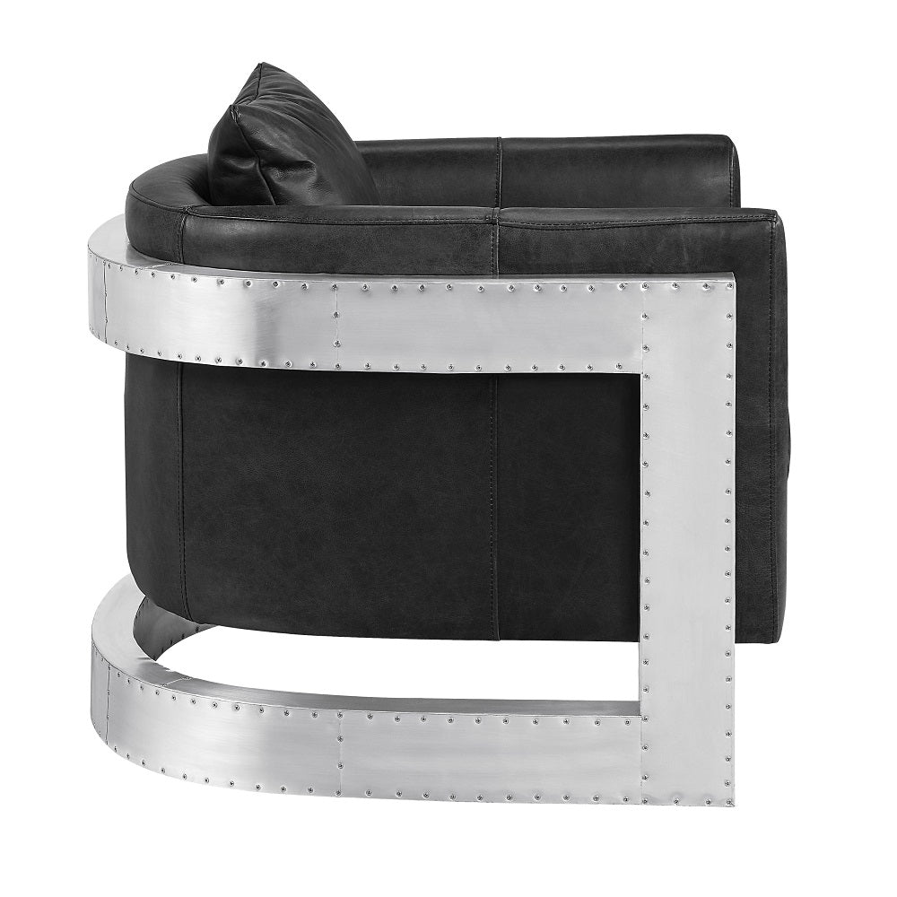 Sillón decorativo Betla AC01986, cuero flor negro y aluminio | Acme
