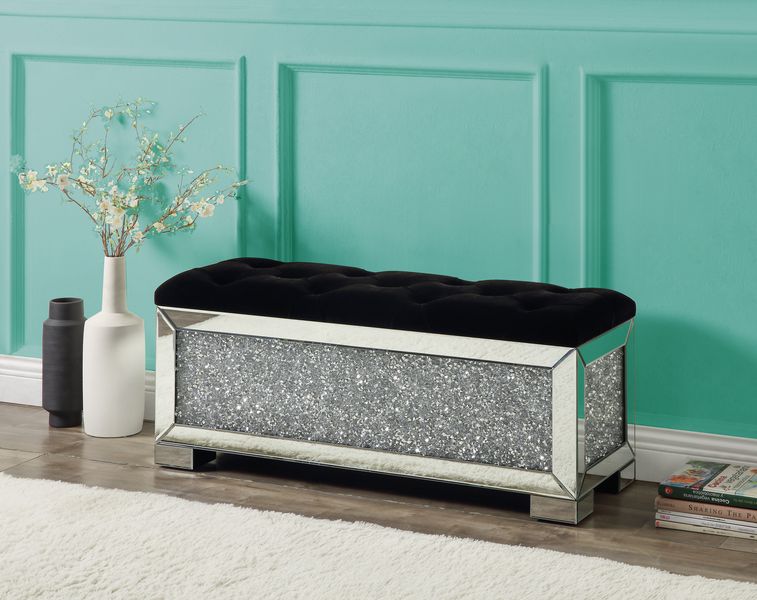 Acme - Banco Noralie con almacenamiento AC00532 con espejo y diamantes falsos