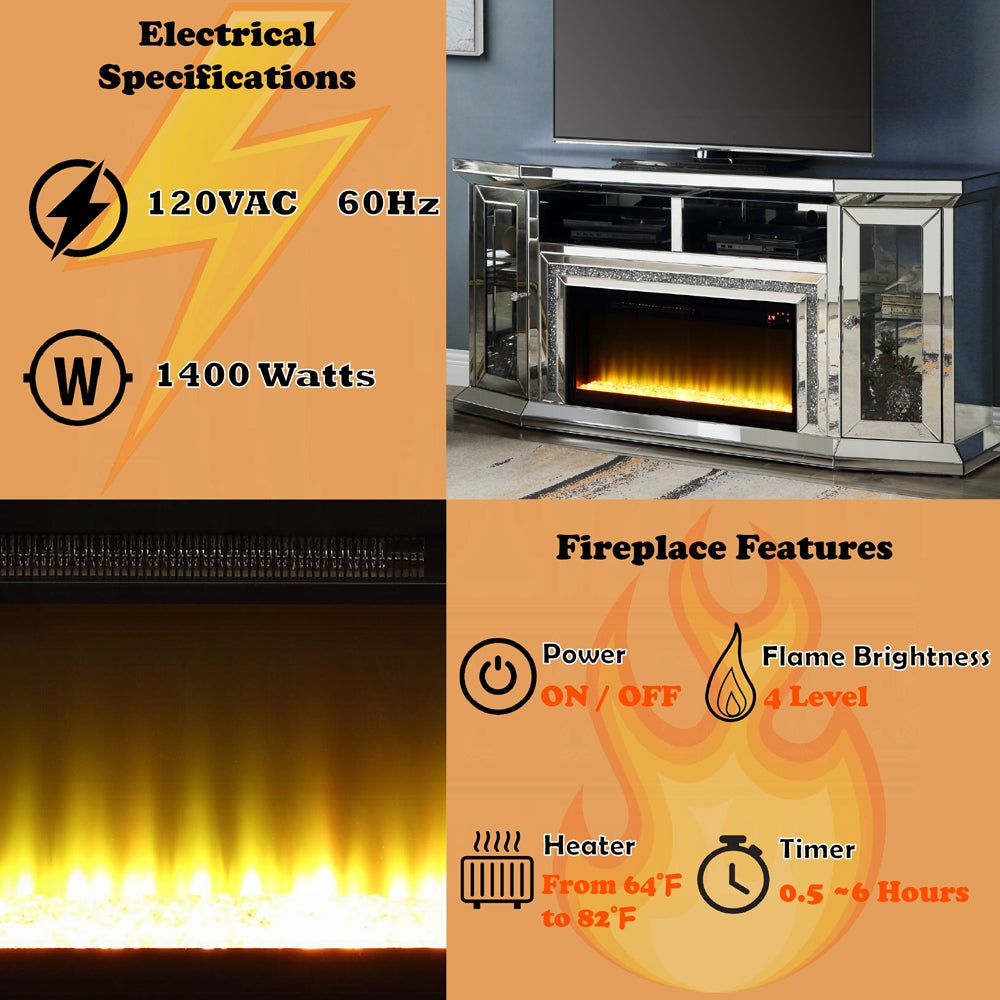 Acme - Mueble de TV Noralie con chimenea y LED AC00517 con espejo y diamantes de imitación
