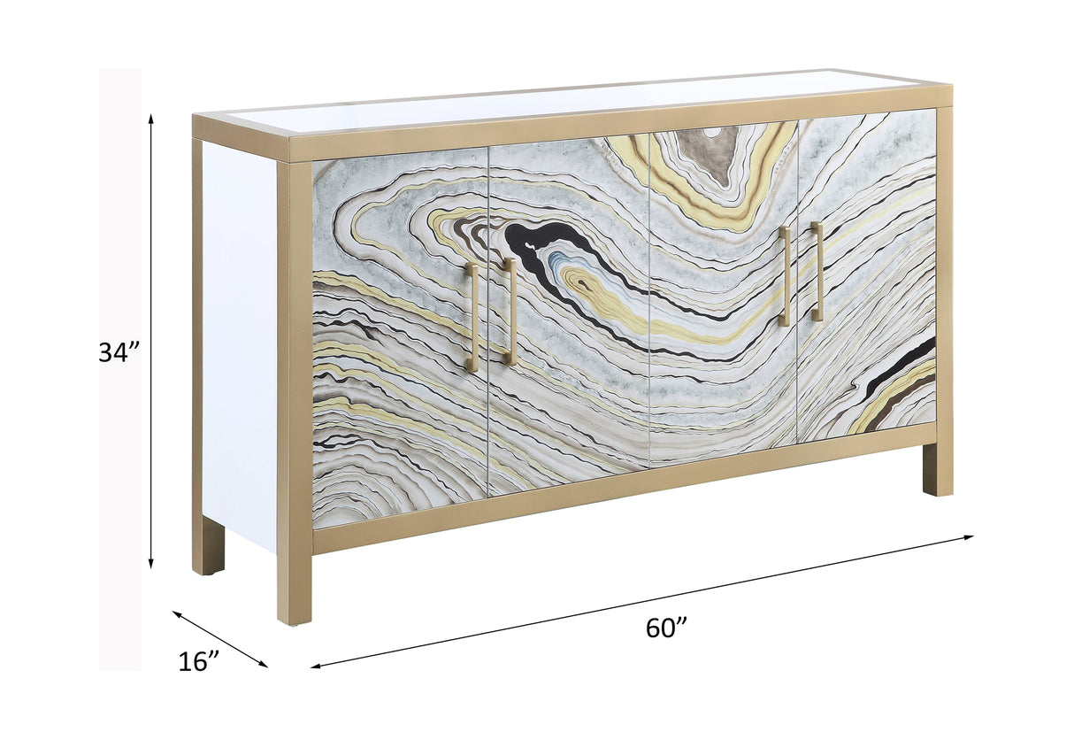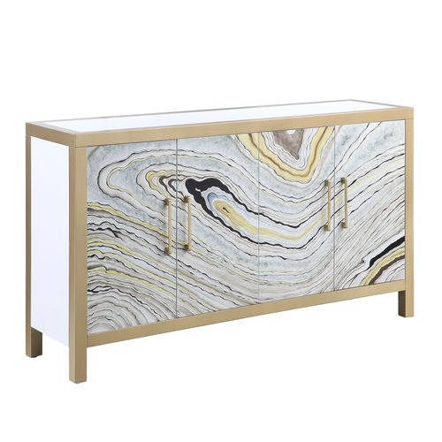 Home Elegance Furniture presenta con orgullo el gabinete consola Olisa AC00283 con acabado en grano de piedra, blanco y dorado | Acme , una adición refinada diseñada para elevar su hogar con un estilo atemporal.