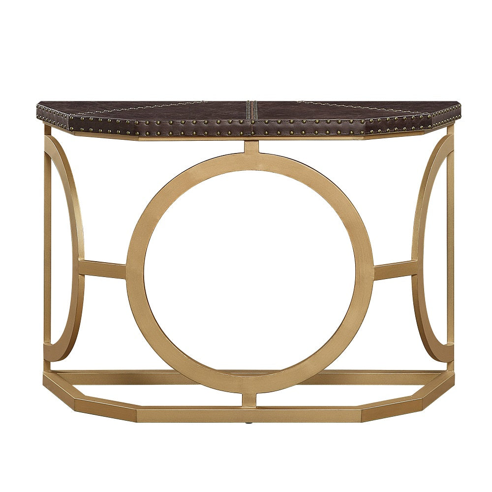 Mesa consola Acme - Solara AC01994 en cuero marrón de grano superior y acabado dorado