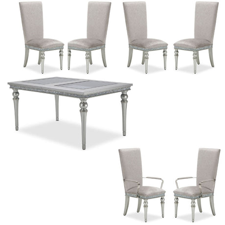 Juego de comedor rectangular Melrose Plaza de 7 piezas, color paloma — Muebles AICO
