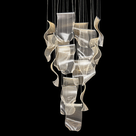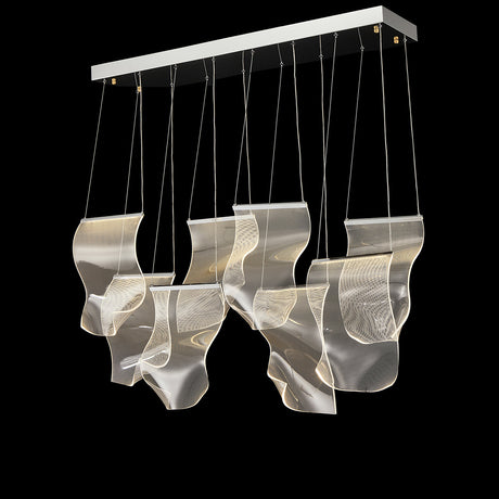Lámpara de araña LED rectangular Sheer Waves de 8 luces, cromada - Lt-Ch1016Crm-8Clr - Muebles Aico