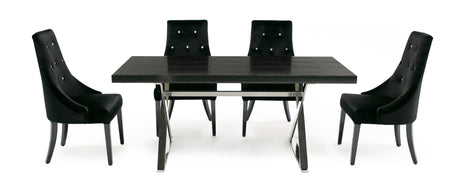 A&X Xavier - Mesa de comedor moderna de acero inoxidable y piel de cocodrilo negra