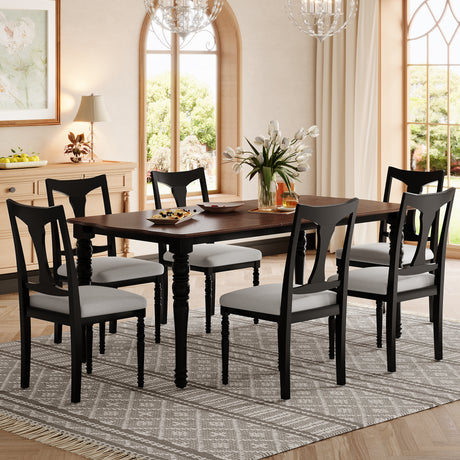 Juego de mesa de 7 piezas en color natural y negro | Homelegance