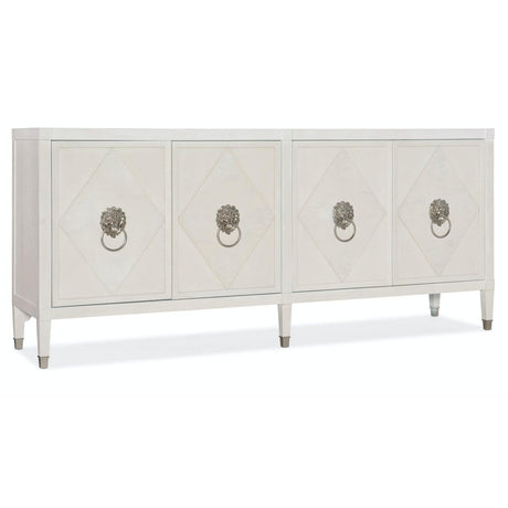 Aparador Madeline de cuatro puertas en tono melange con detalles plateados – Muebles Hooker