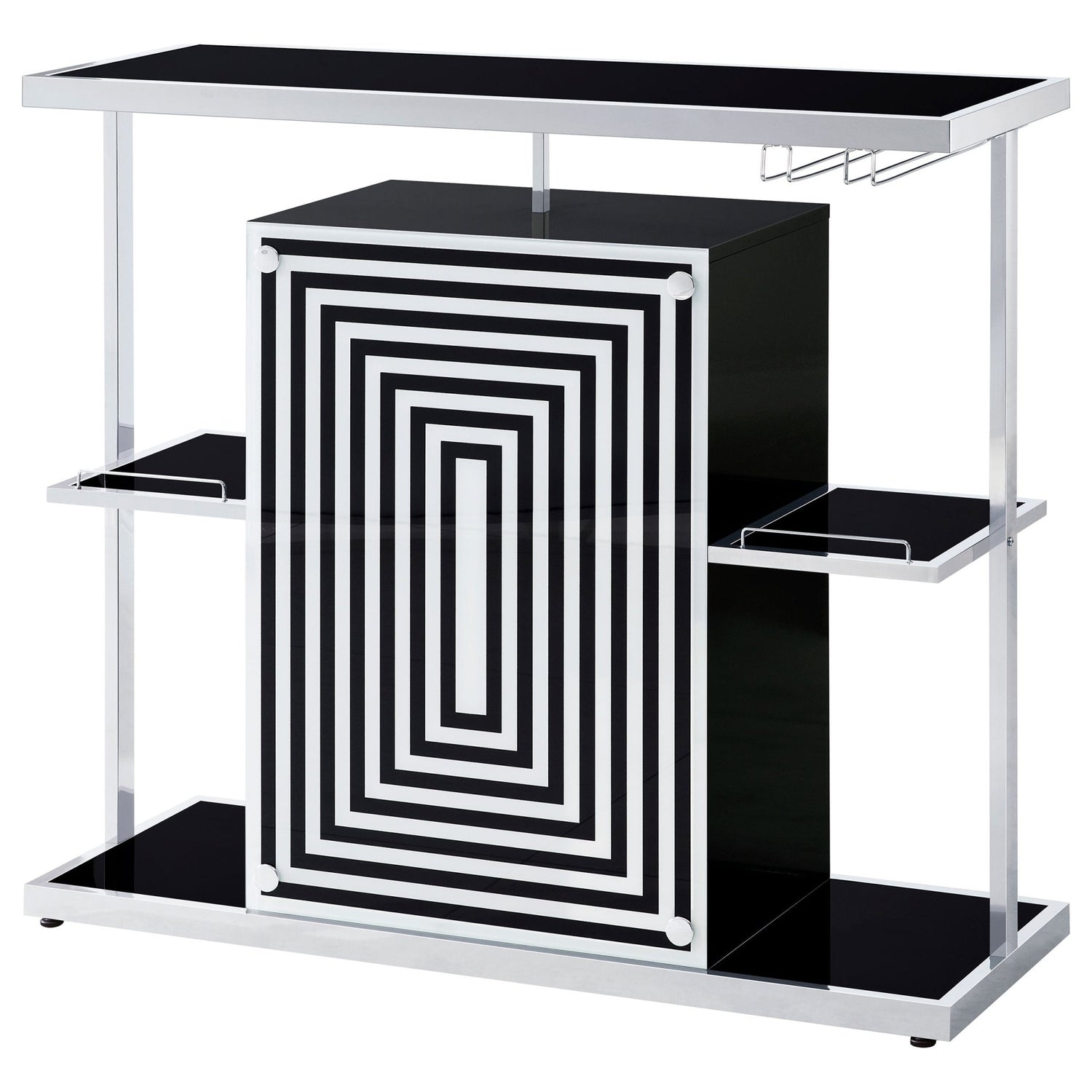 Mueble bar Zinnia de dos niveles en blanco y negro brillante | Coaster