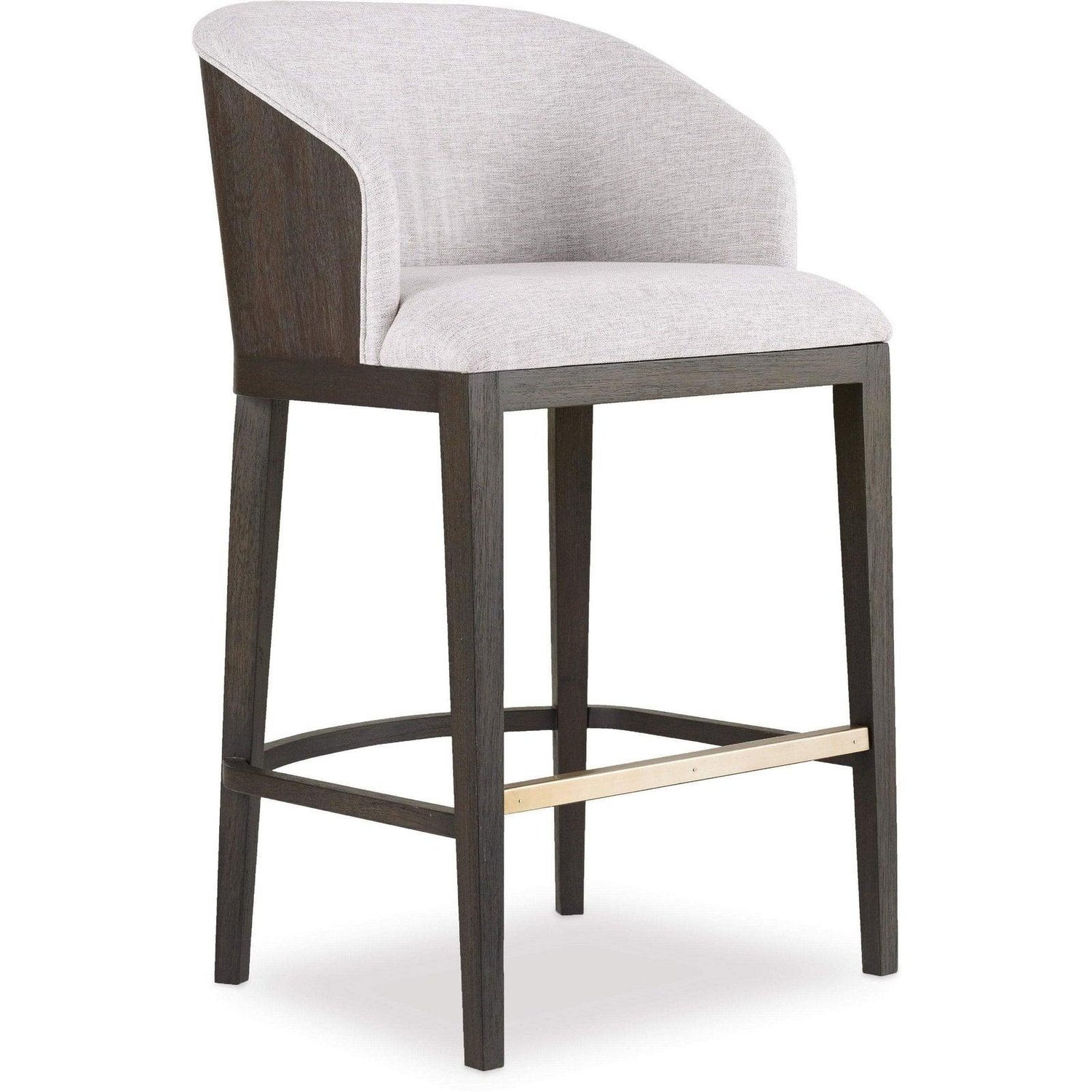Añada un toque de sofisticación moderna y chic a su espacio con el taburete de bar tapizado Curata de Hooker Furniture . Con una combinación perfecta de materiales, este taburete presenta un asiento y respaldo de tela Montlieu Opal en tono neutro, complementado con un acabado en madera oscura color medianoche y un reposapiés de metal cepillado. El respaldo exterior luce una elegante chapa de roble blanco, que contrasta orgánicamente con la suave tapicería.