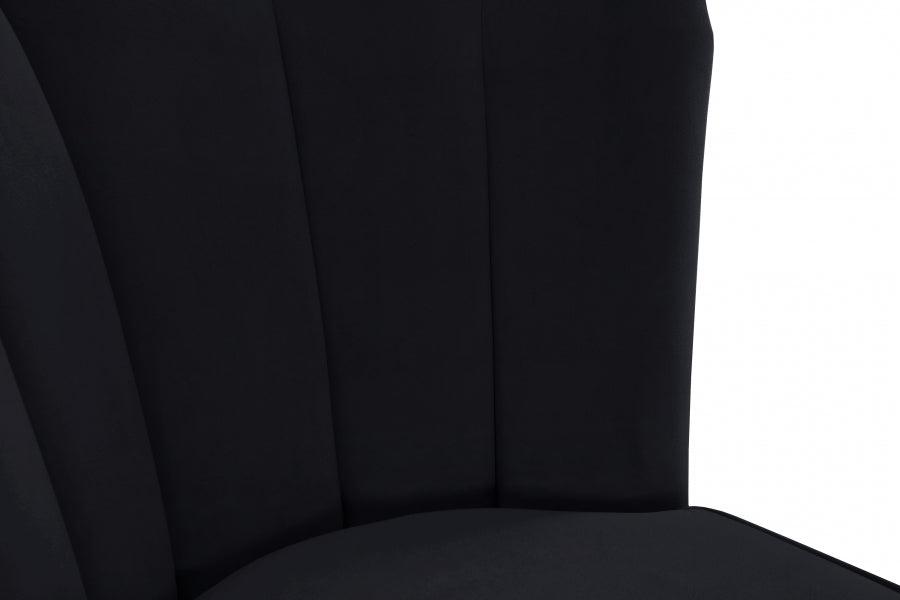 Enamórese perdidamente del hermoso taburete de bar Lily de Meridian Furniture. Este encantador taburete cuenta con un llamativo respaldo de terciopelo negro en forma de abanico con un capitoné profundo que mantiene el acolchado interior alto y elevado para mayor comodidad. El asiento y el respaldo acolchados están tapizados hasta la médula para un máximo lujo y belleza. Las patas de metal negro con acabado mate y puntas doradas le aportan un toque contemporáneo, ya sea para el bar o la cocina.