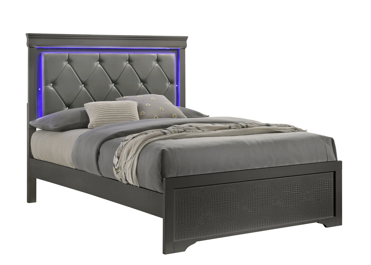 Blaze Upholstered Modern Style 4 Pc King Bedroom Set with LED Headboard Made with Wood in Metallic Gray(CA WAREHOUSE)