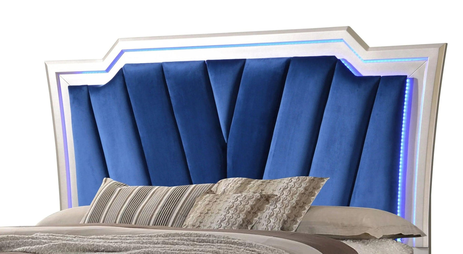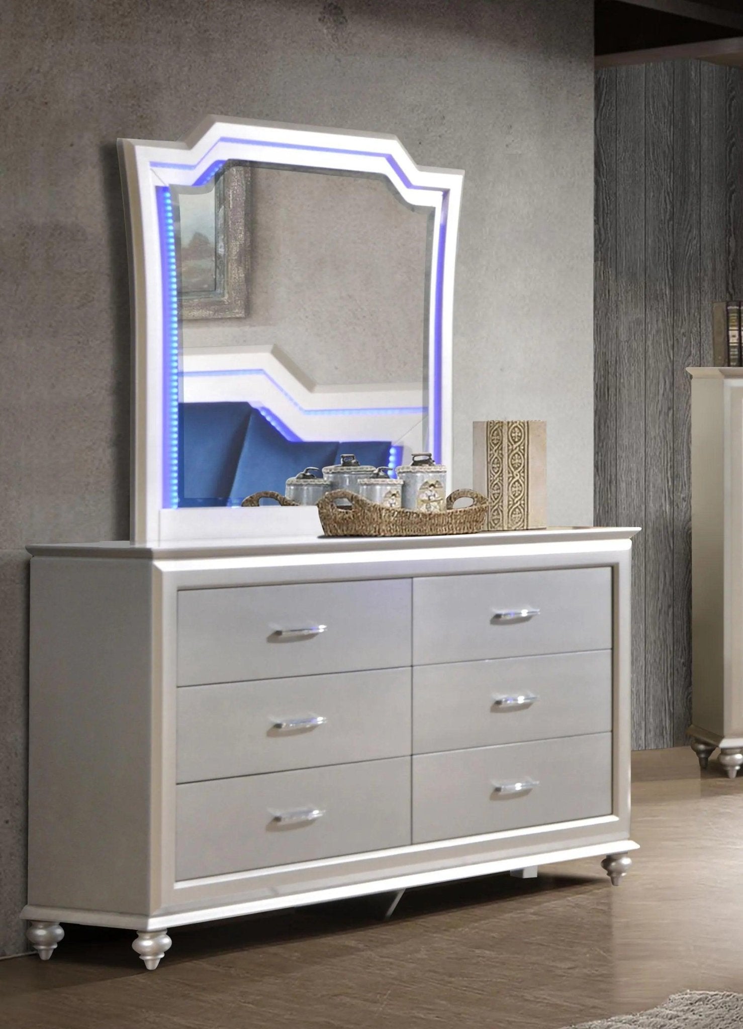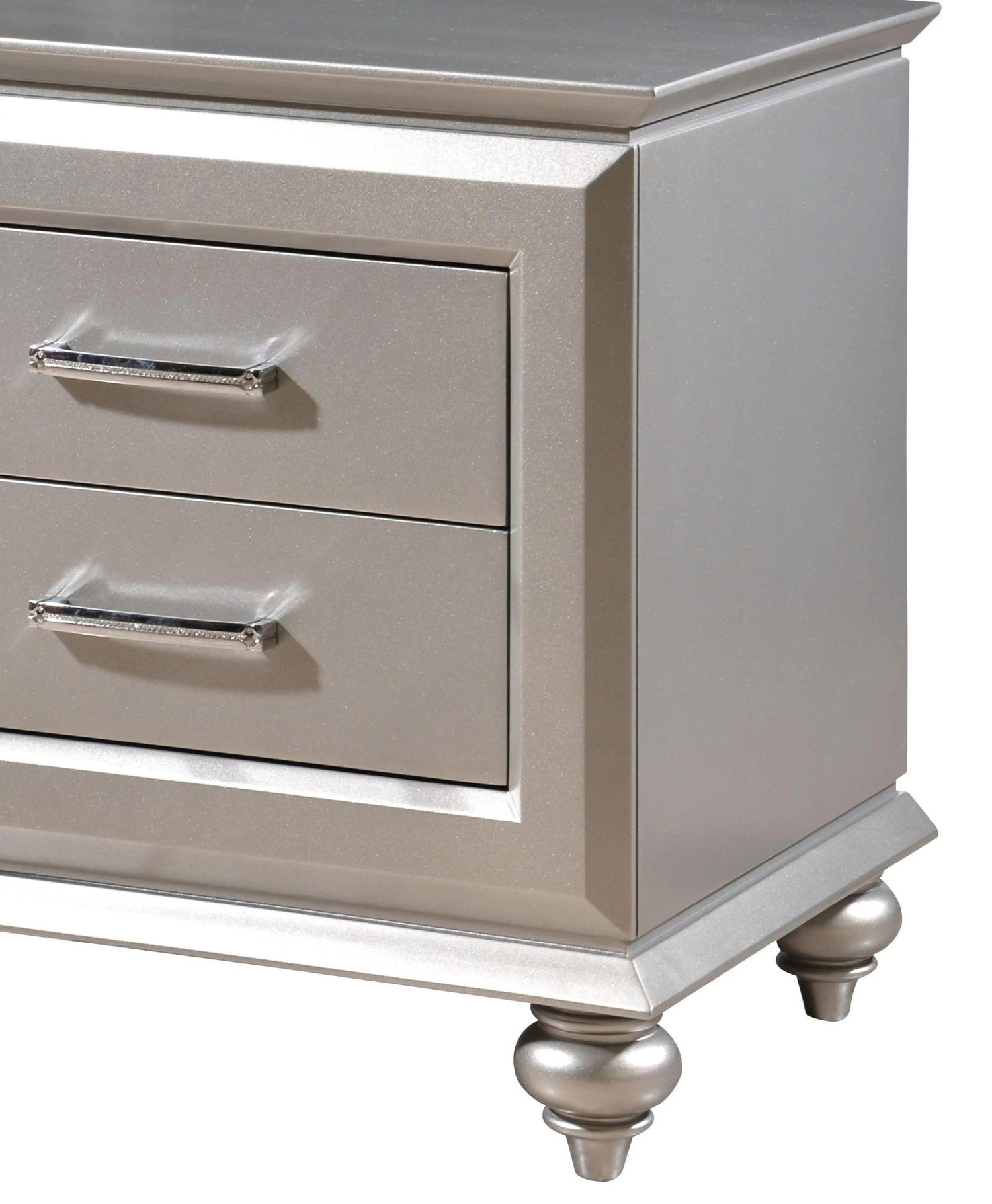 Juego de dormitorio moderno Alia de 6 piezas con acabado plateado | Cosmos