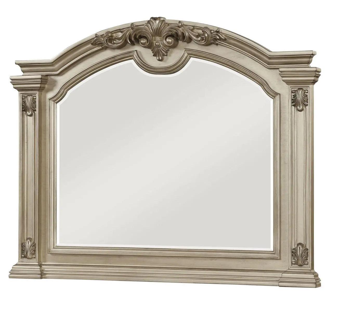 Juego de dormitorio de transición Alicia de 6 piezas en acabado beige metalizado | Cosmos