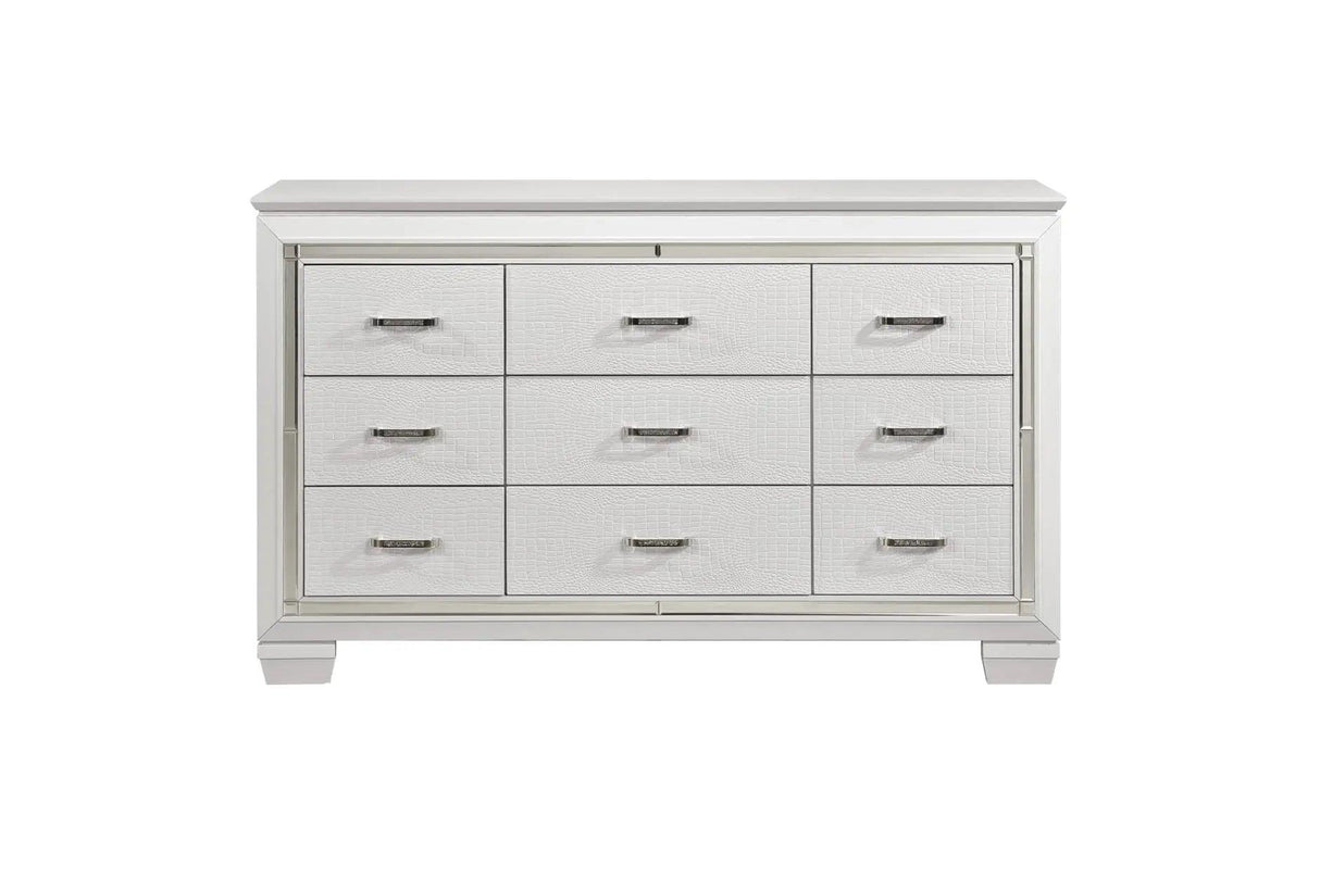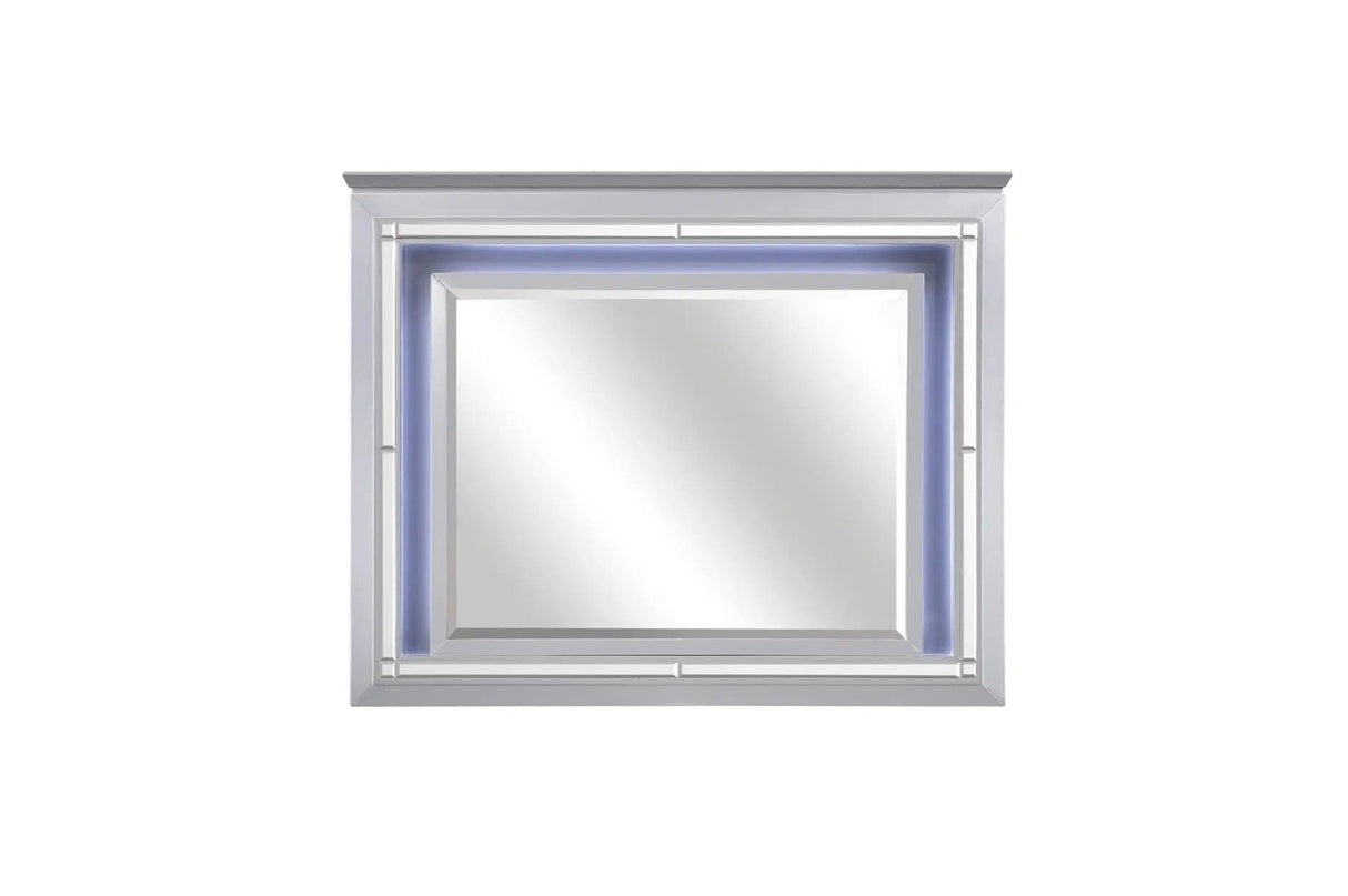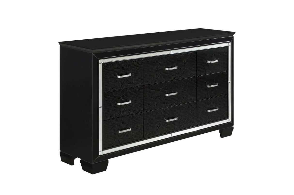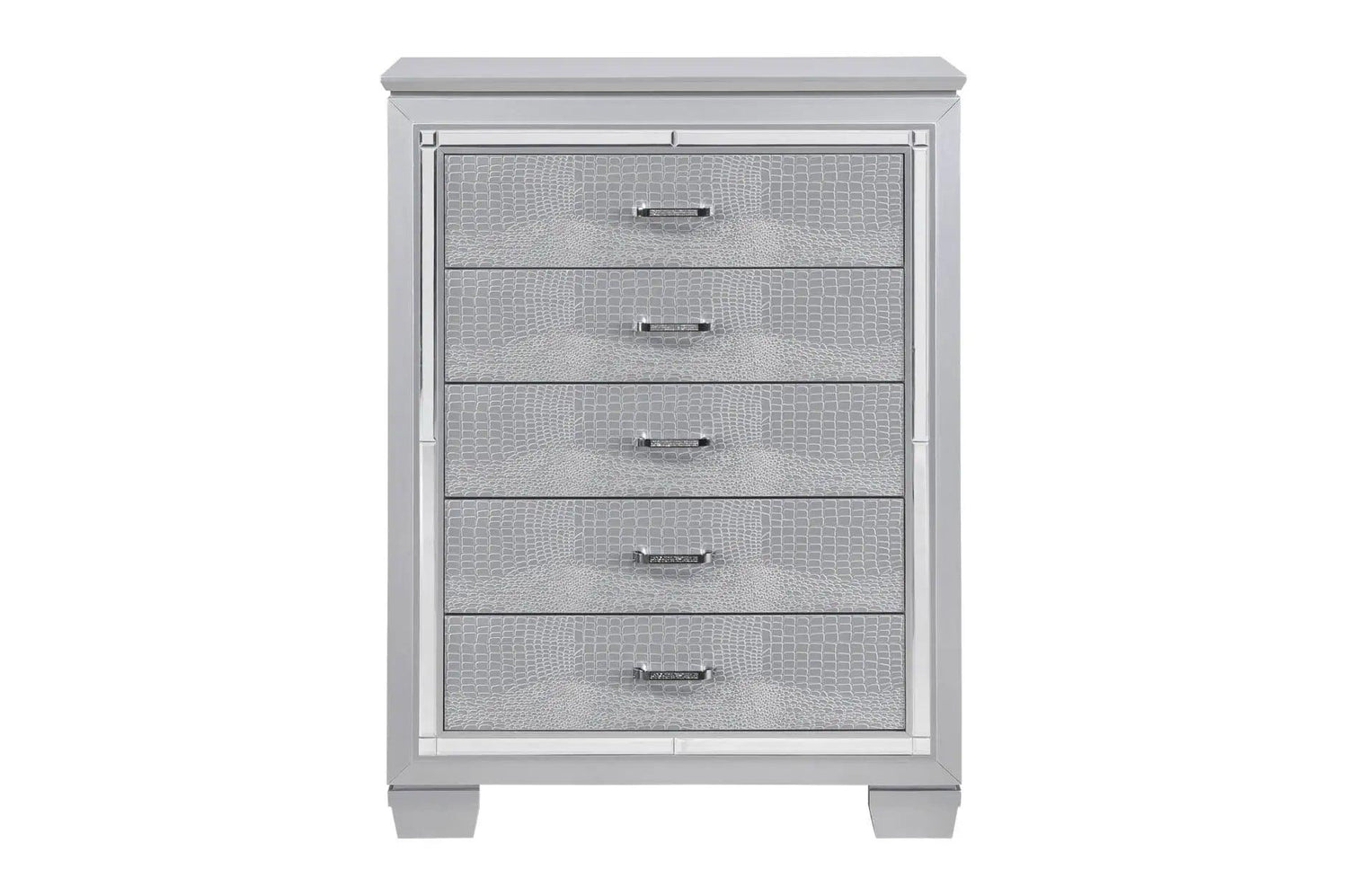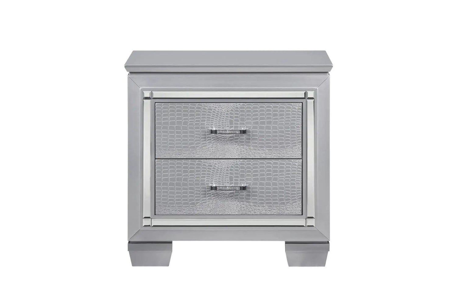 Conjunto de dormitorio Allura | Homelegance - Plata / Tamaño Queen / Cama + Cómoda + Espejo + 1 Mesilla de Noche está agotado y se enviará tan pronto como vuelva a estar disponible.