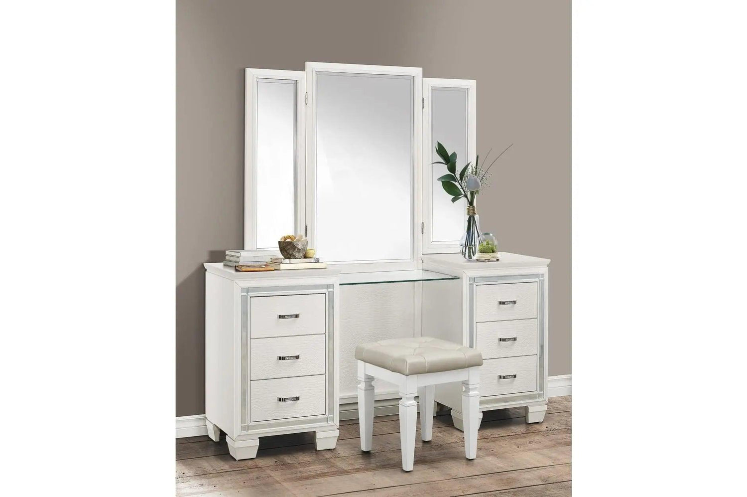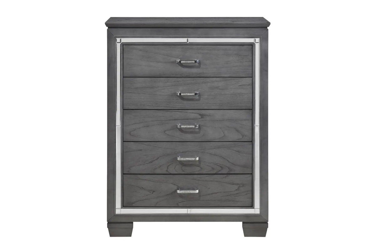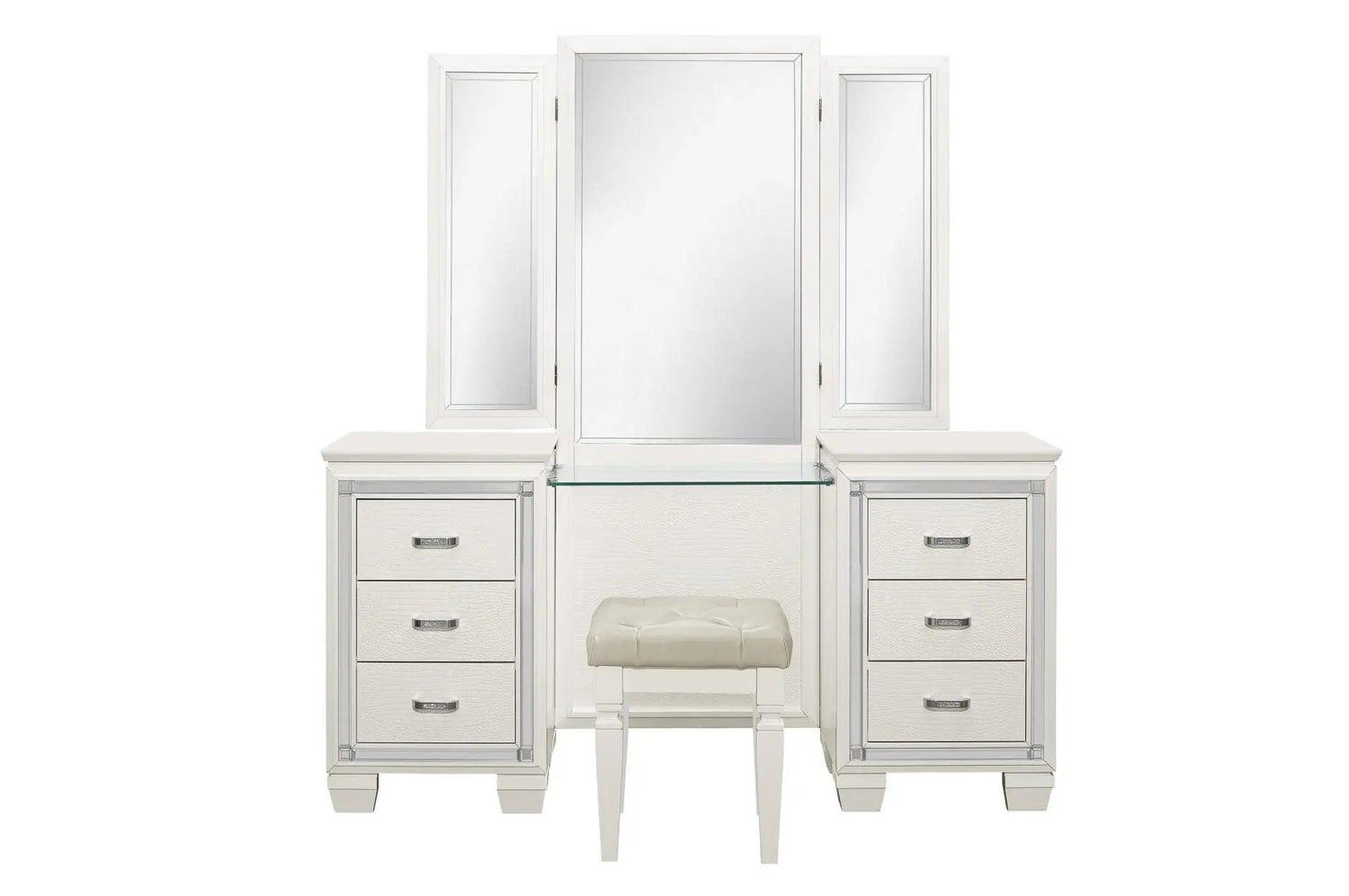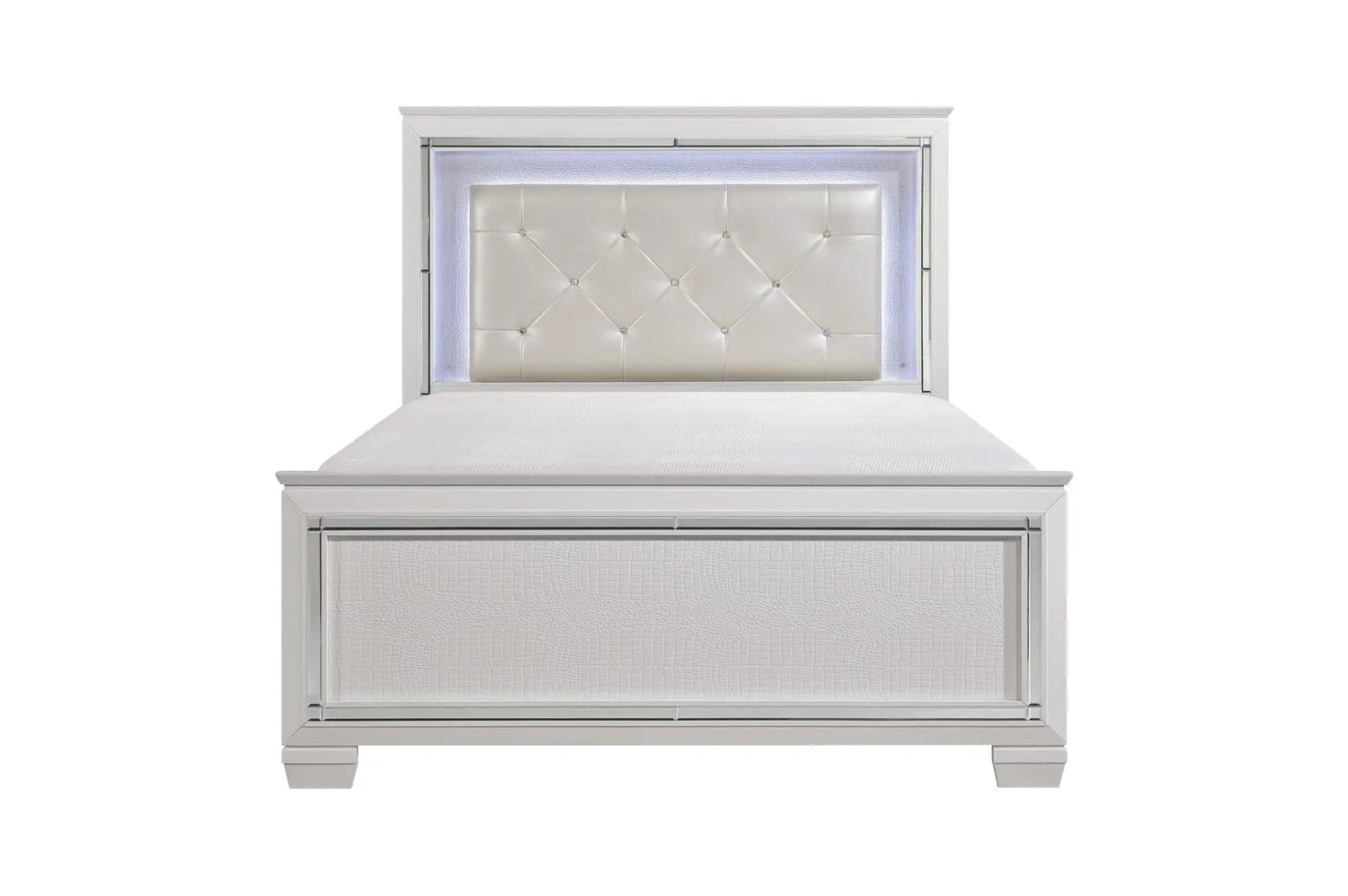 Conjunto de dormitorio Allura | Homelegance - Plata / Tamaño Queen / Cama + Cómoda + Espejo + 1 Mesilla de Noche está agotado y se enviará tan pronto como vuelva a estar disponible.
