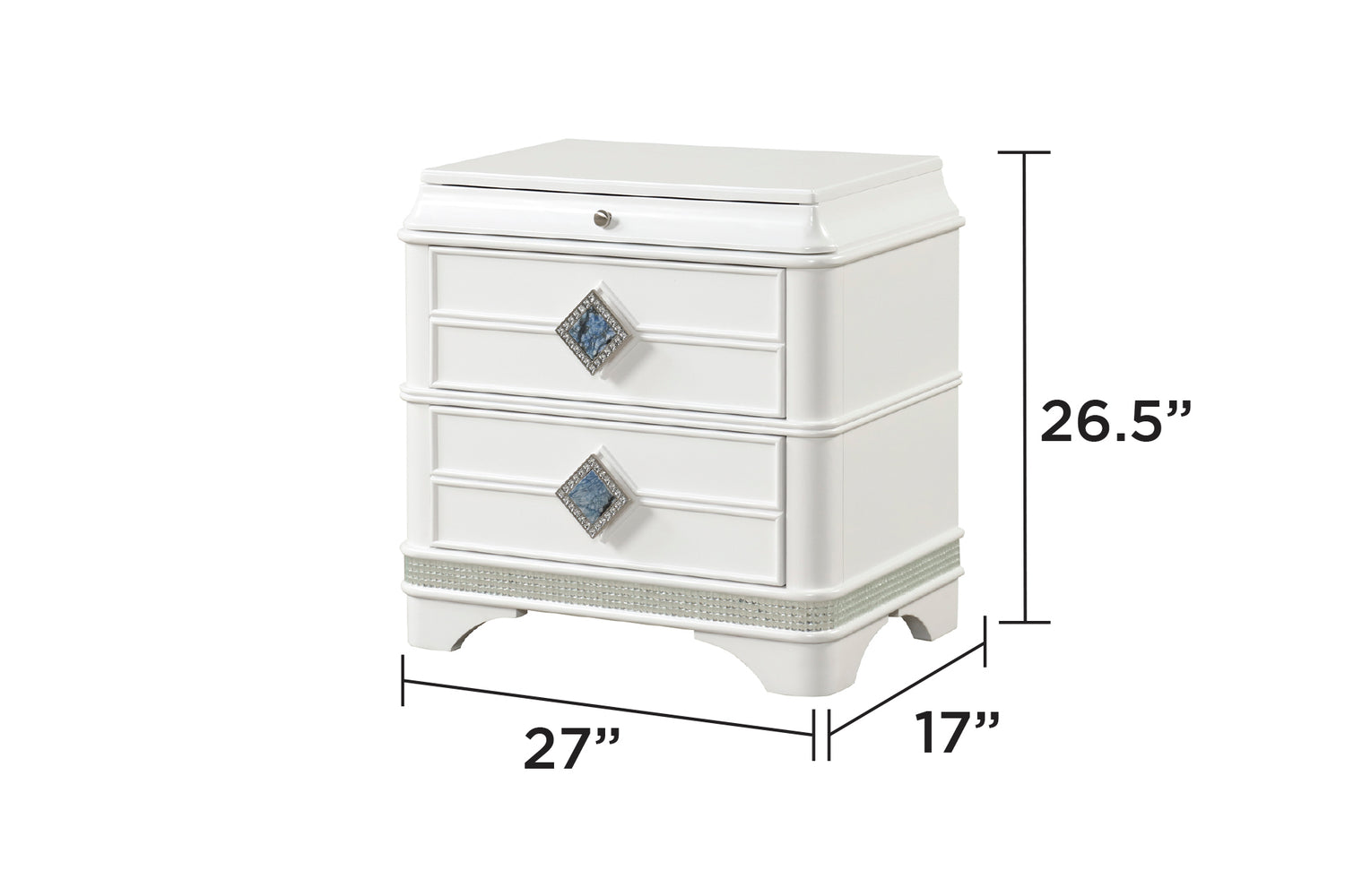 Laguna Modern Style 5 Pc Queen Upholstered Bedroom Set Made with Wood and Crystal Accents in White(CA INVENTORY)
