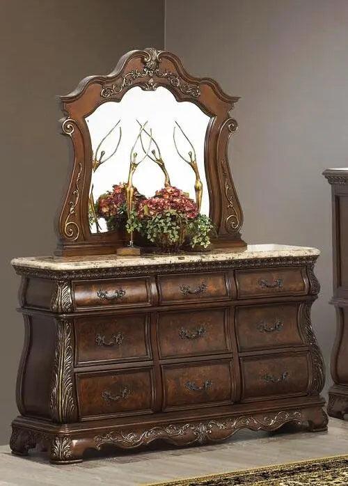Juego de dormitorio moderno Cleopatra de 6 piezas en acabado cerezo | Cosmos