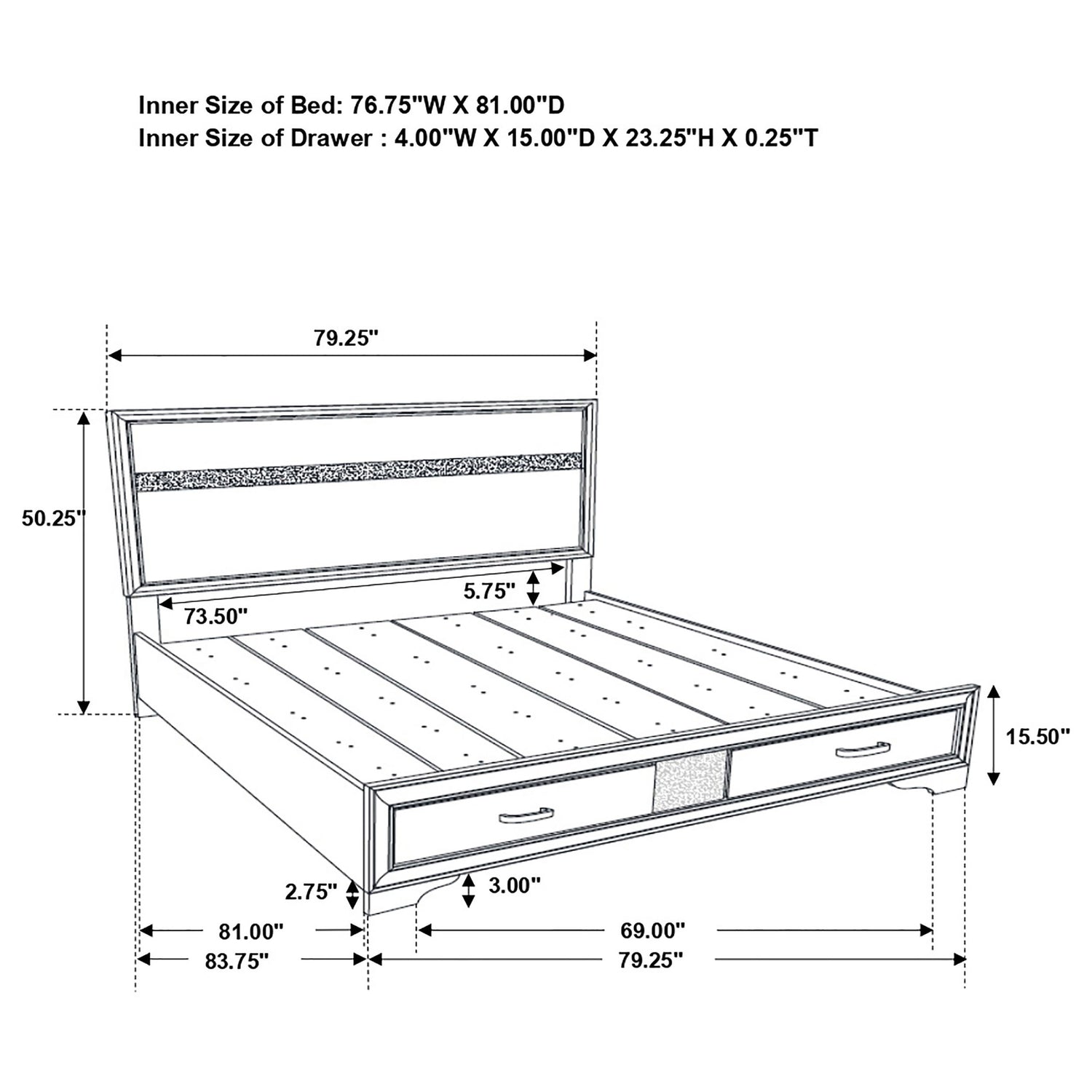 - Bed features convenient storage at the footboard and a fully slatted platform system compatible with most mattress types