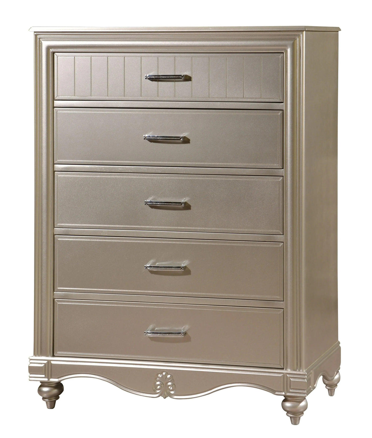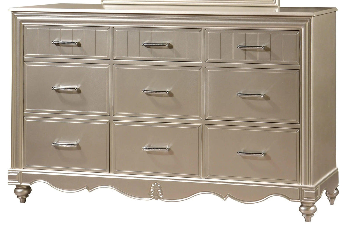 Juego de dormitorio tradicional Faisal de 6 piezas con acabado champán | Cosmos