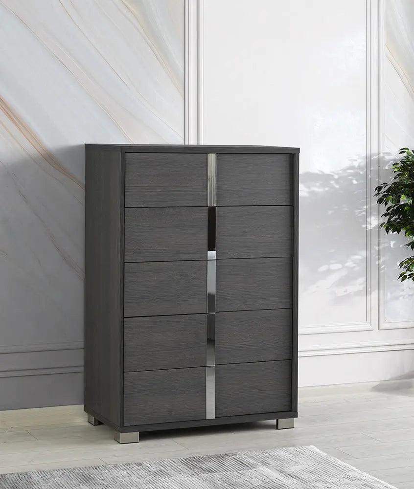 Elegante, moderna, a la moda y duradera son las características de la colección de dormitorio Giulia. Esta colección, elegante y contemporánea, presenta elegantes elementos de diseño, como tiradores cromados que llaman la atención sutilmente. Además, Giulia cuenta con una moderna luz LED en el cabecero. La colección está disponible en tres colores magnéticos: blanco brillante, gris con estampado brillante y roble gris mate. No incluye colchón ni decoración.