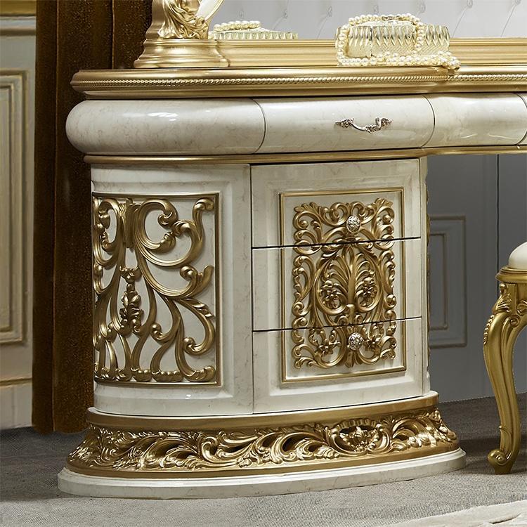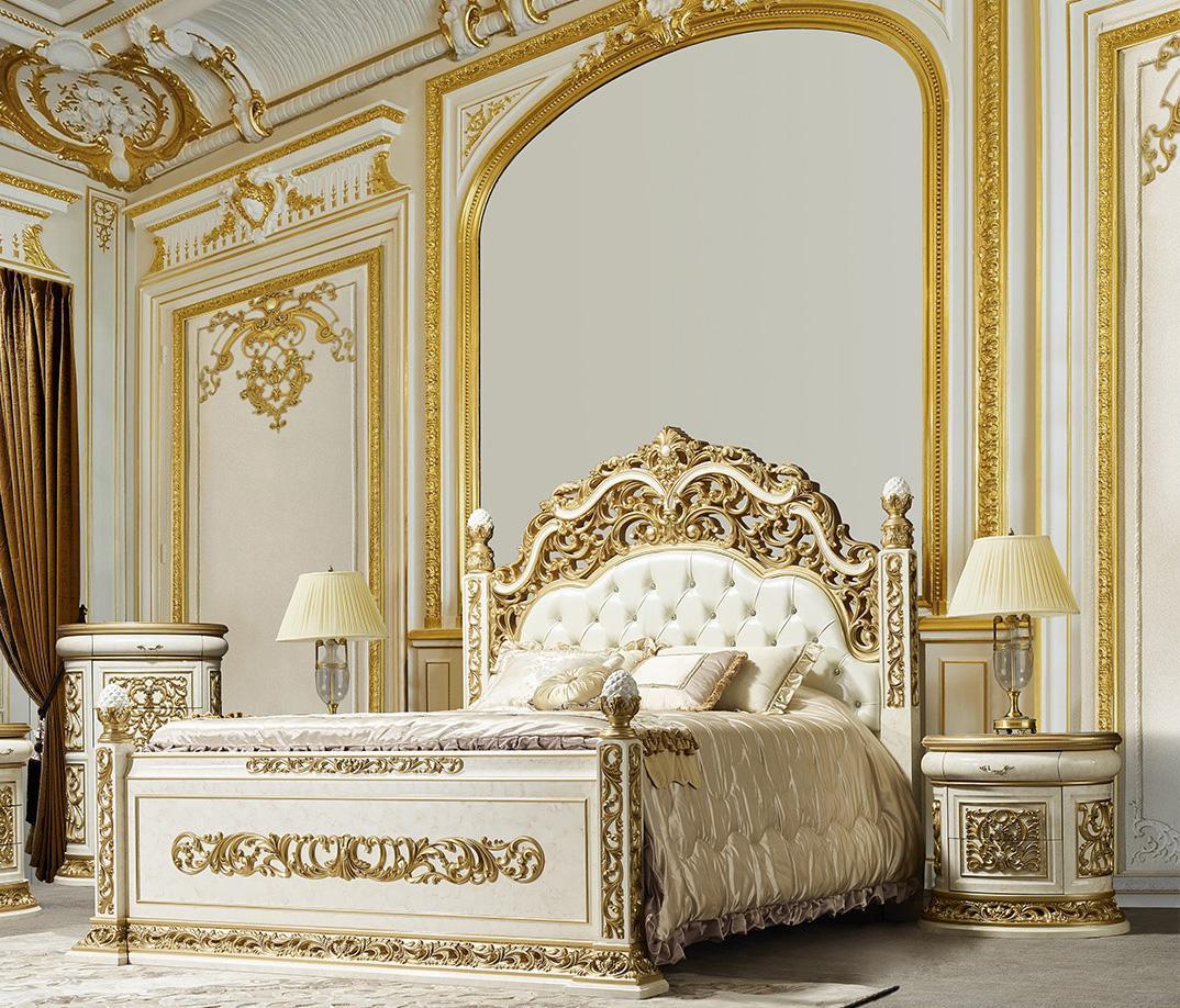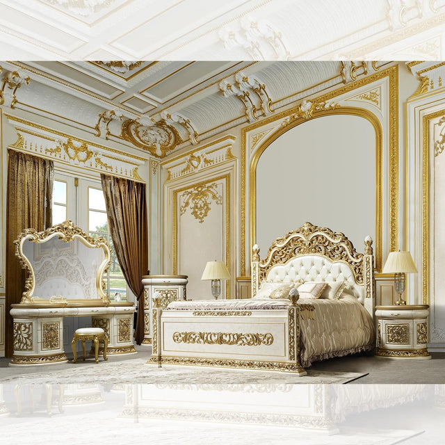Juego de dormitorio King Size Hd-903 con acabado blanco antiguo y dorado | Diseño hogareño